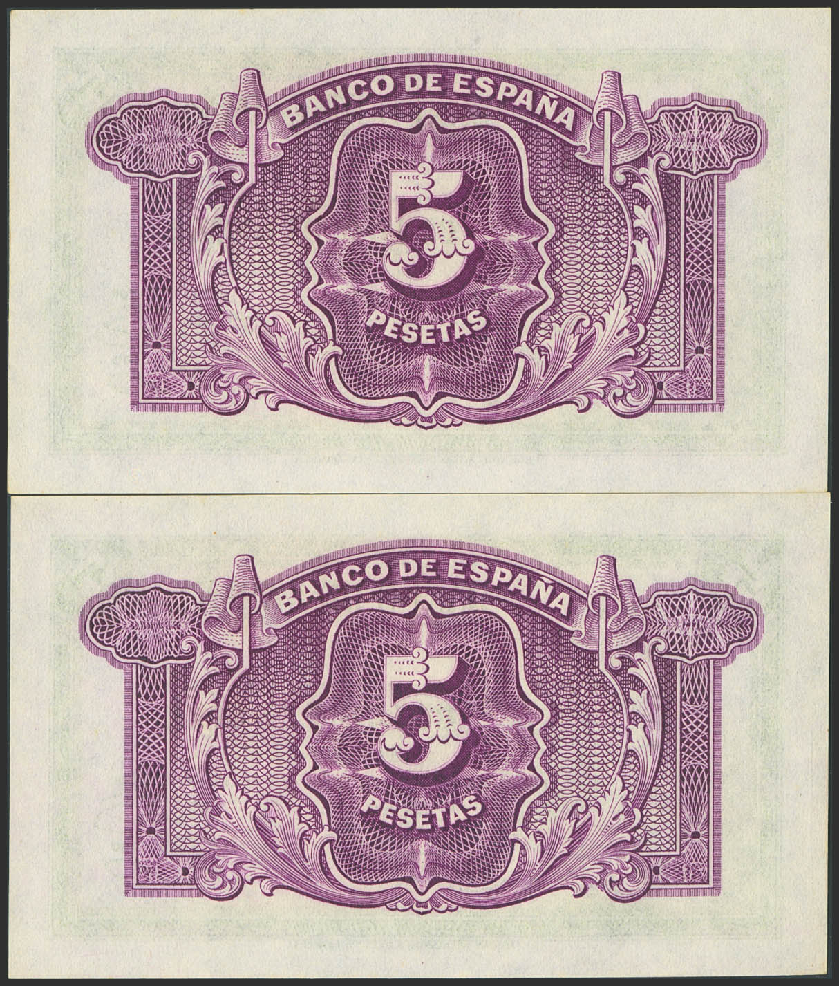 5 Pesetas. 1935. Certificado de Plata. Pareja correlativa. Serie B. (Edifil 2023: 363a). Apresto original. SC-.