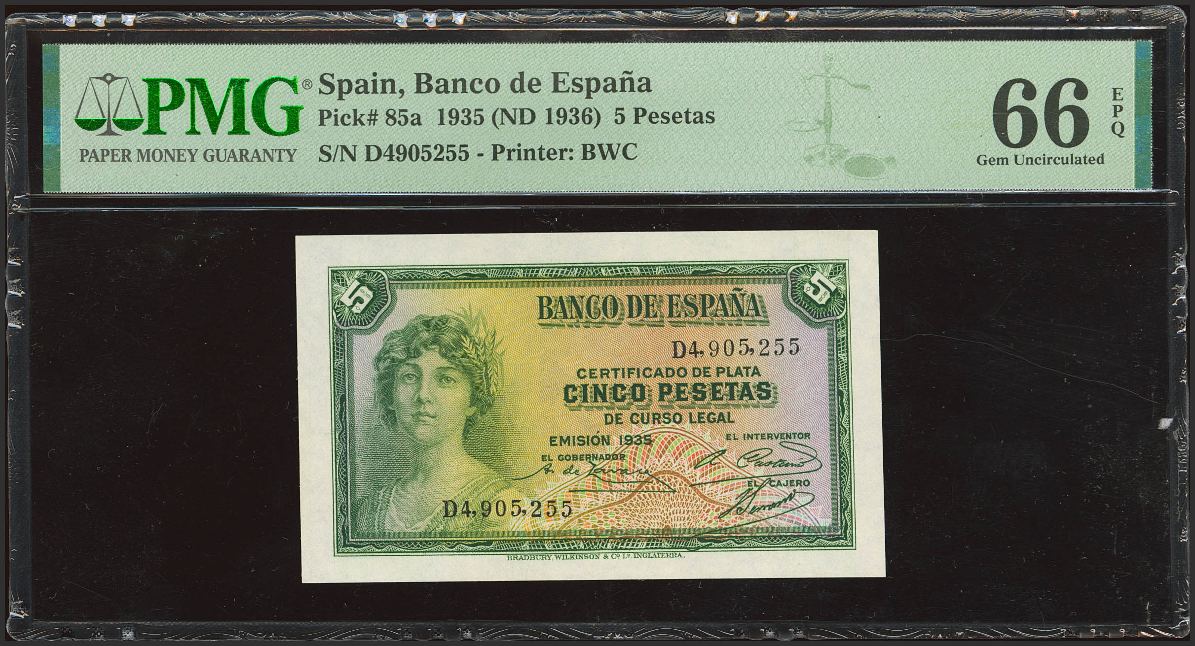 5 Pesetas. 1935. Certificado de plata. Serie D. (Edifil 2023: 363b, Pick: 85a). Apresto original. SC. Encapsulado PMG66EPQ.