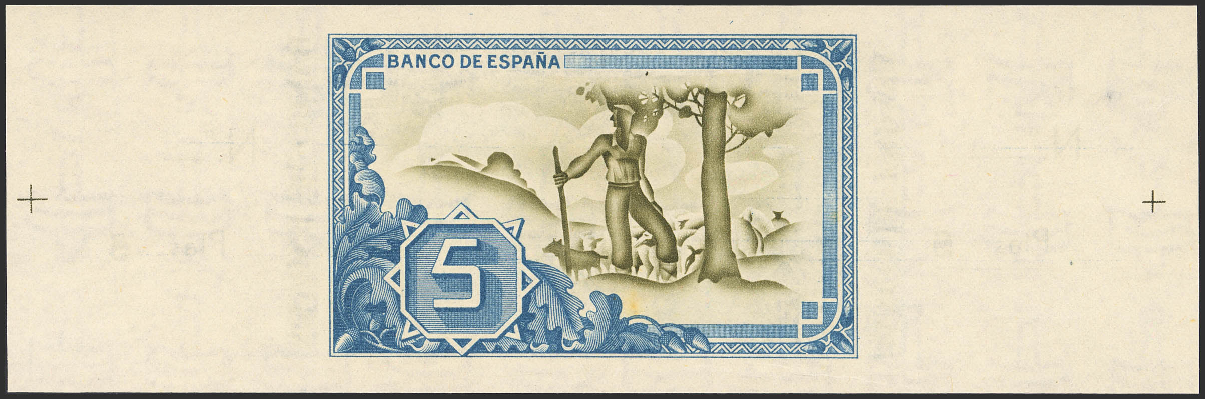 5 Pesetas. 1 de Enero de 1937. Sucursal de Bilbao, antefirma Banco Urquijo Vascongado. Serie A y sin numeración, con ambas matrices. (Edifil 2023: 386f). Apresto original. SC.
