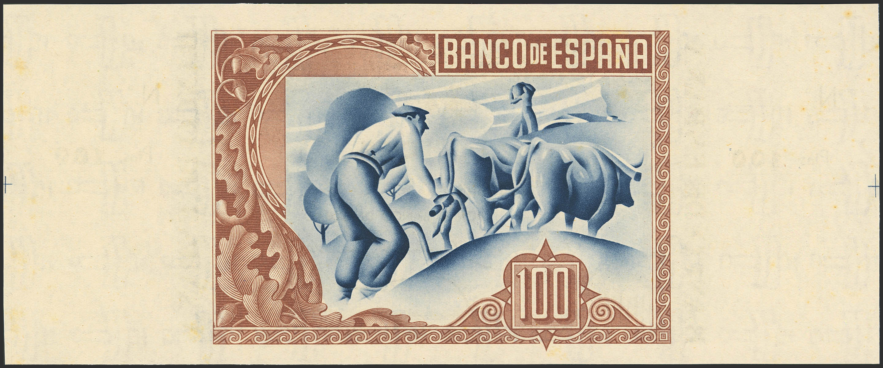 100 Pesetas. 1 de Enero de 1937. Sucursal de Bilbao, antefirma Banco de Bilbao. Sin serie y sin numeración, con ambas matrices. (Edifil 2023: 390a). Apresto original y habituales puntitos del tiempo. SC-.