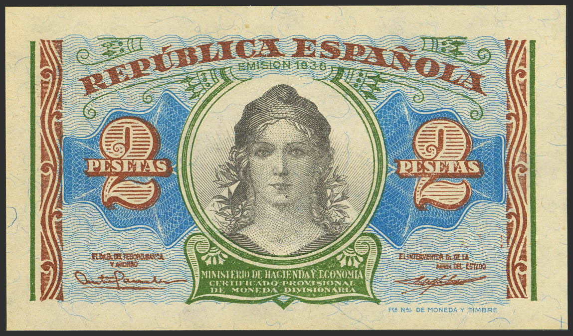 2 Pesetas. 1936. Serie A. (Edifil 2023: 393). Apresto original. SC.