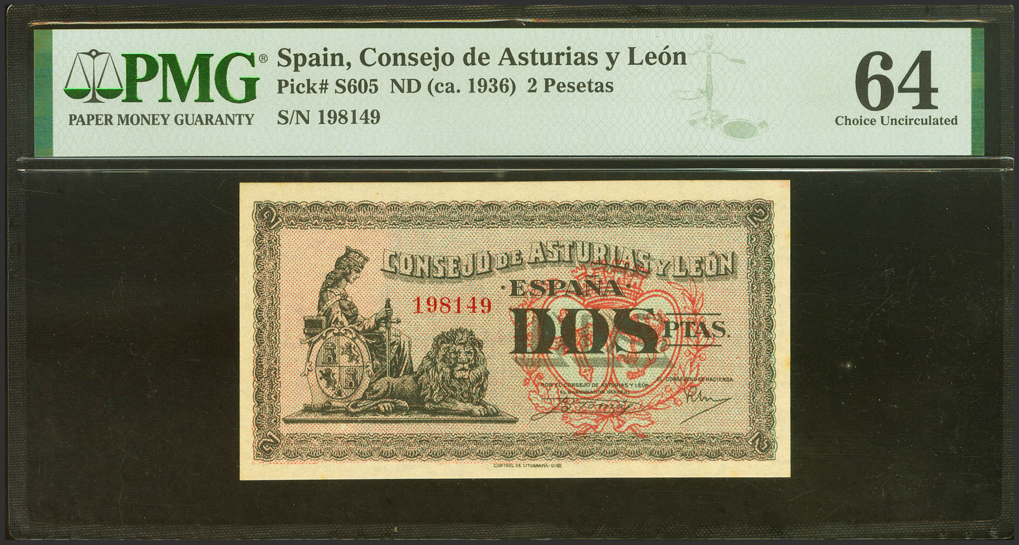 2 Pesetas. 1937. Asturias y León. Sin serie. (Edifil 2021: 398, Pick: S605). SC. Encapsulado PMG64.