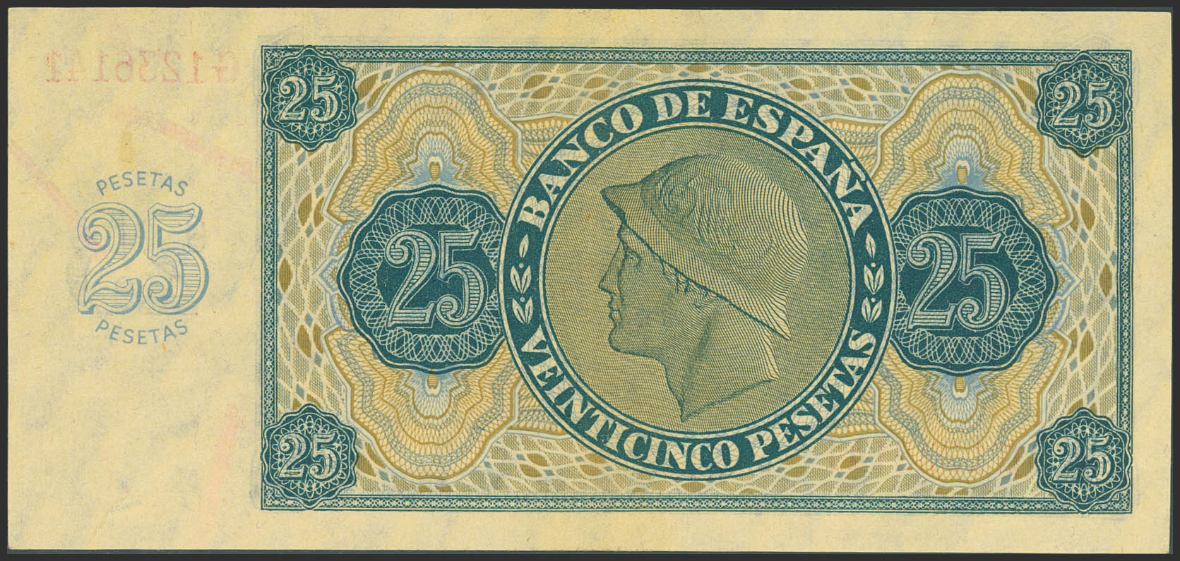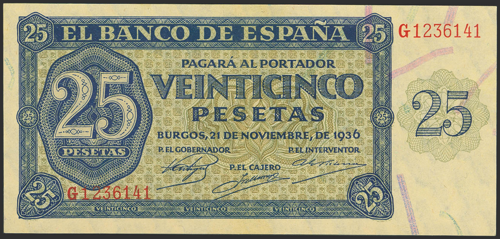 25 Pesetas. 21 de Noviembre de 1936. Serie G. (Edifil 2023: 419a). Apresto original. EBC+++.