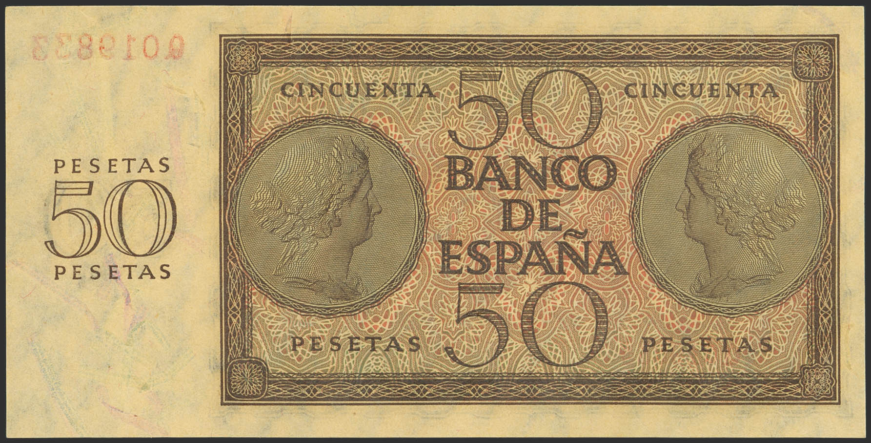 50 Pesetas. 21 de Noviembre de 1936. Serie Q. (Edifil 2023: 420a). Apresto original. SC.