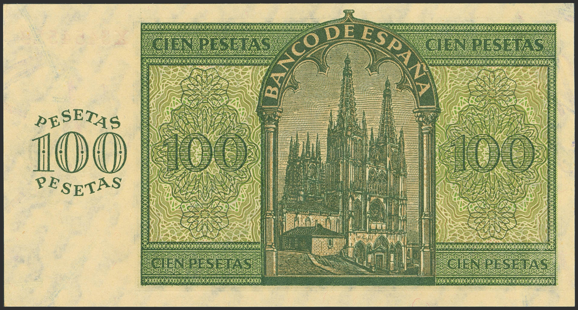 100 Pesetas. 21 de Noviembre de 1936. Serie X, última serie emitida. (Edifil 2023: 421b). Apresto original. SC.