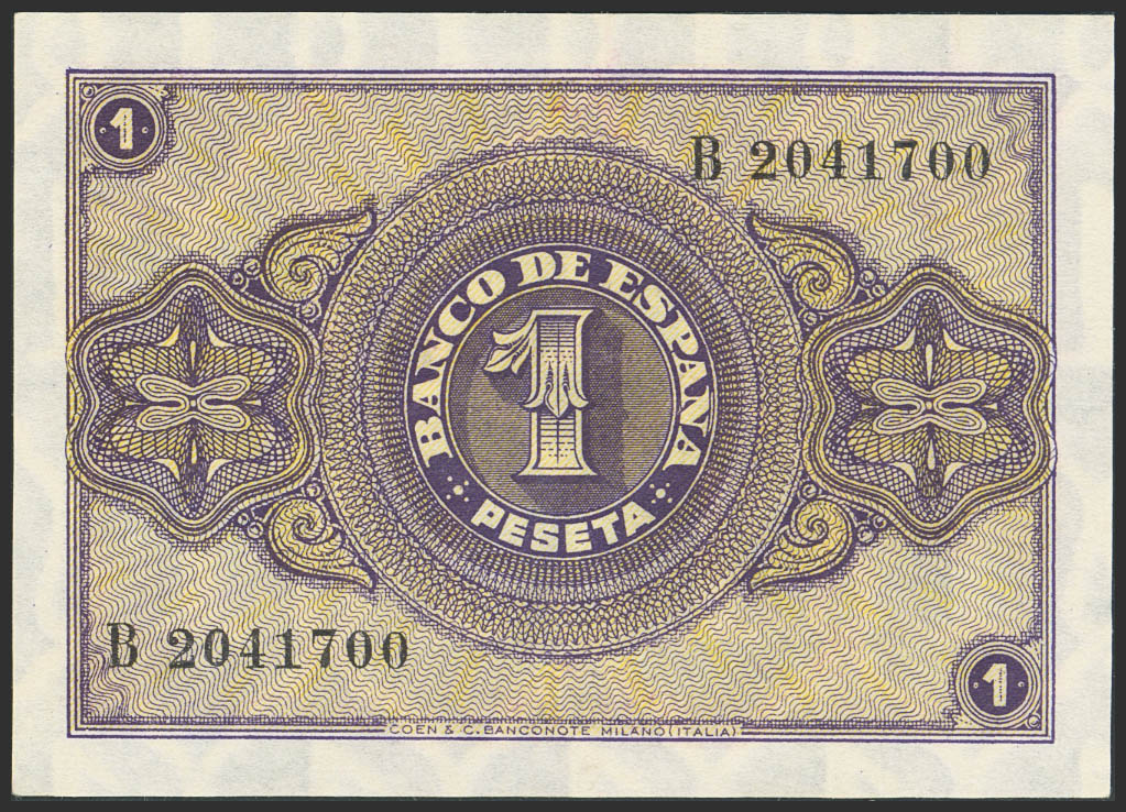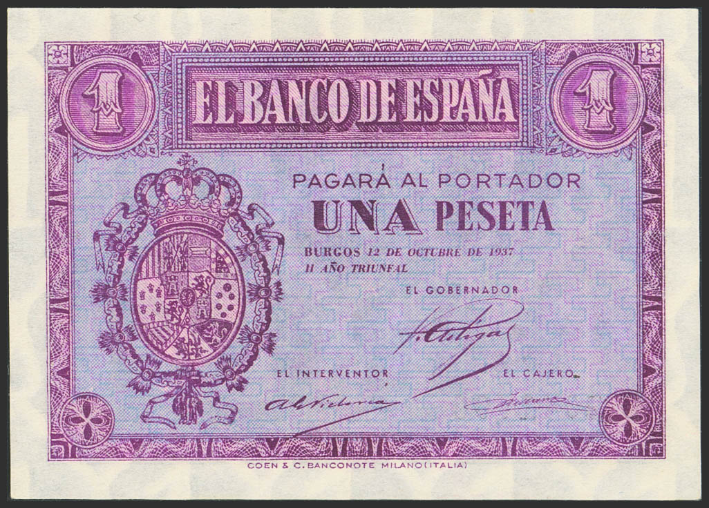 1 Peseta. 12 de Octubre de 1937. Serie B. (Edifil 2023: 425a). Conserva gran parte de su apresto original. EBC+++.
