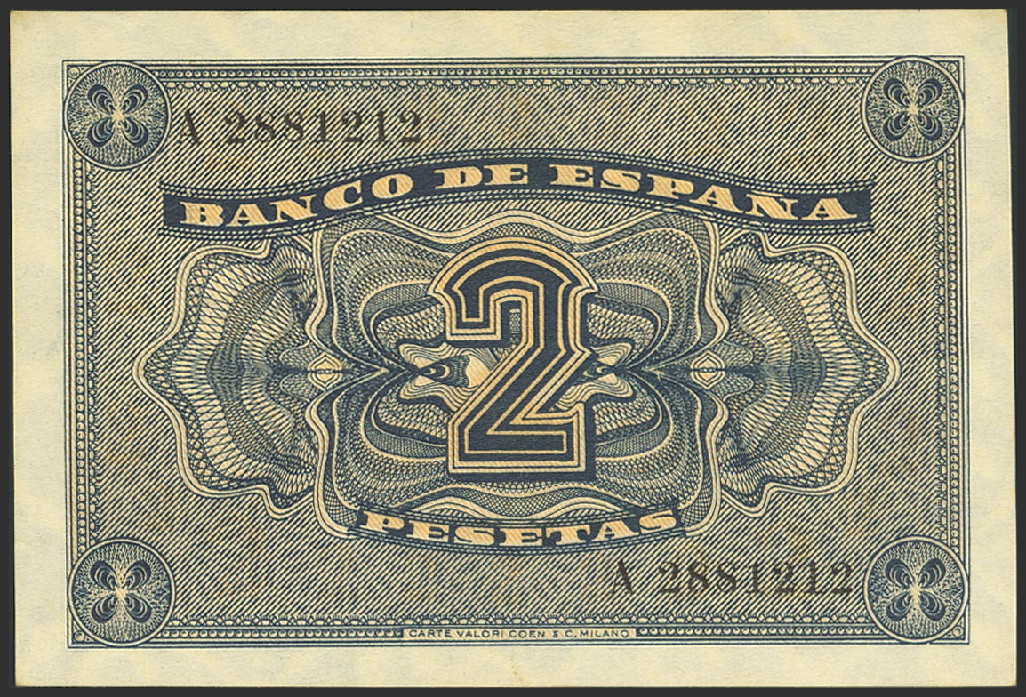 2 Pesetas. 12 de Octubre de 1937. Serie A. (Edifil 2023: 426). Inusual, apresto original y tonalizado. SC-.