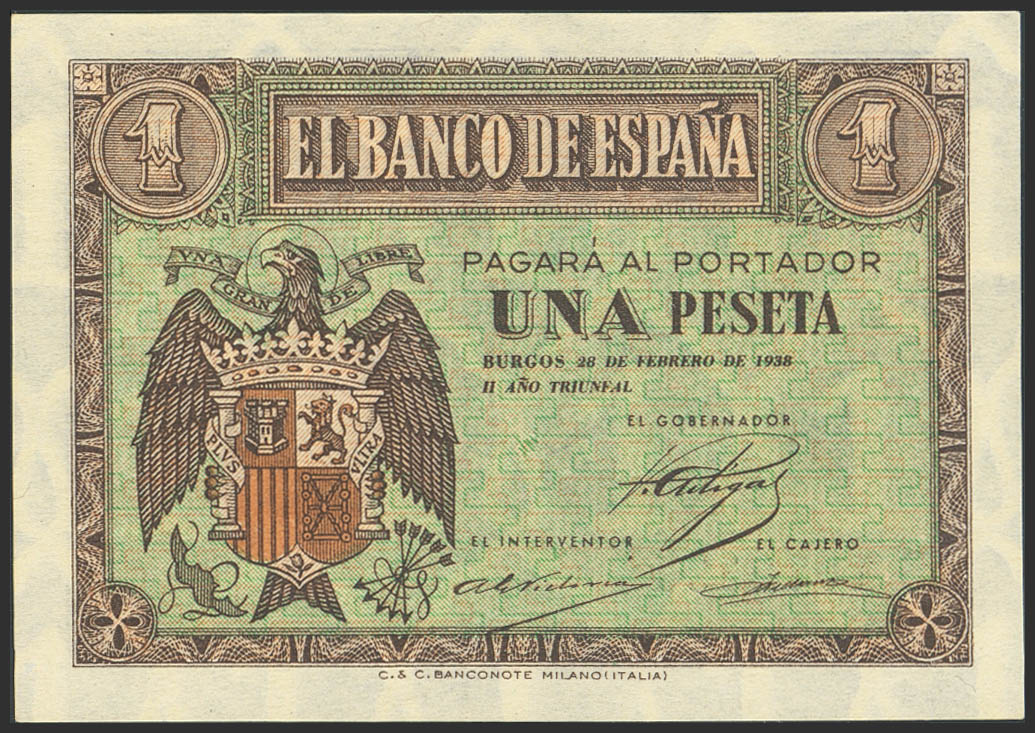 1 Peseta. 28 de Febrero de 1938. Serie B. (Edifil 2023: 427a). Apresto original. SC.