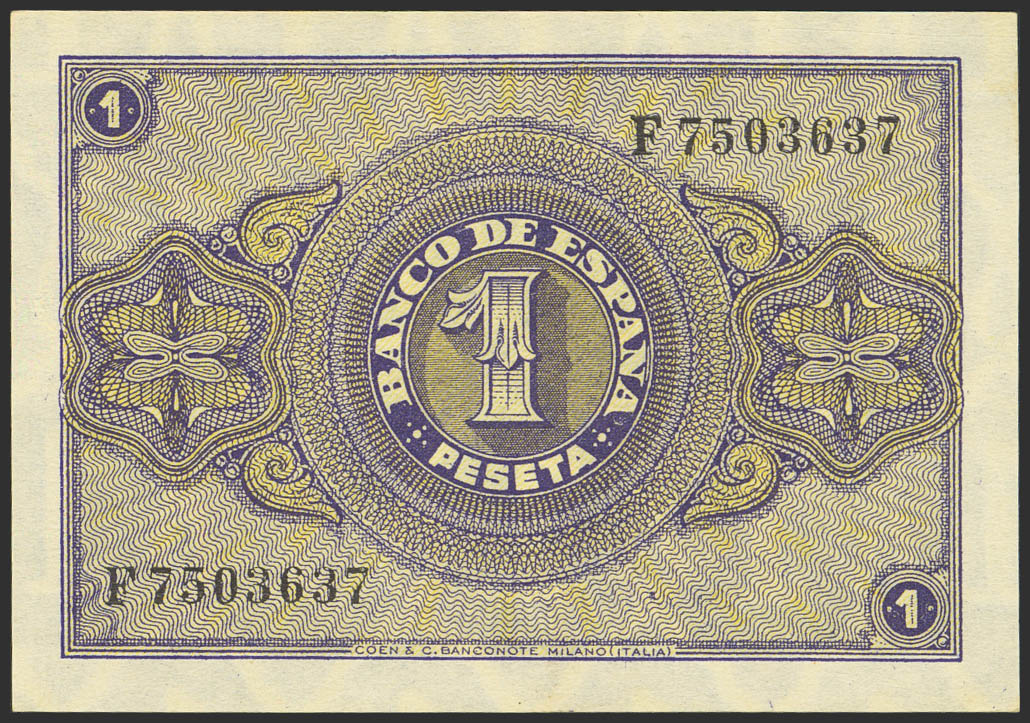 1 Peseta. 30 de Abril de 1938. Serie F. (Edifil 2023: 428a). Apresto original. SC.