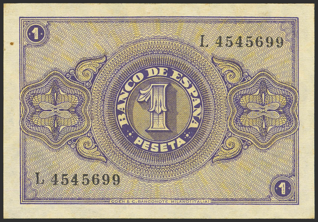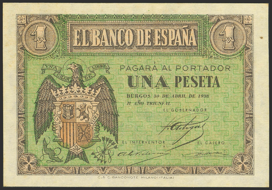 1 Peseta. 10 de Abril de 1938. Serie L. (Edifil 2023: 428a). Apresto original, tonalizado. SC-.