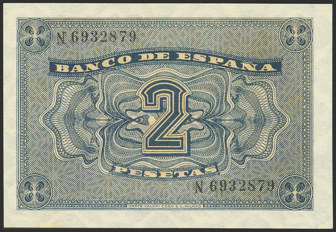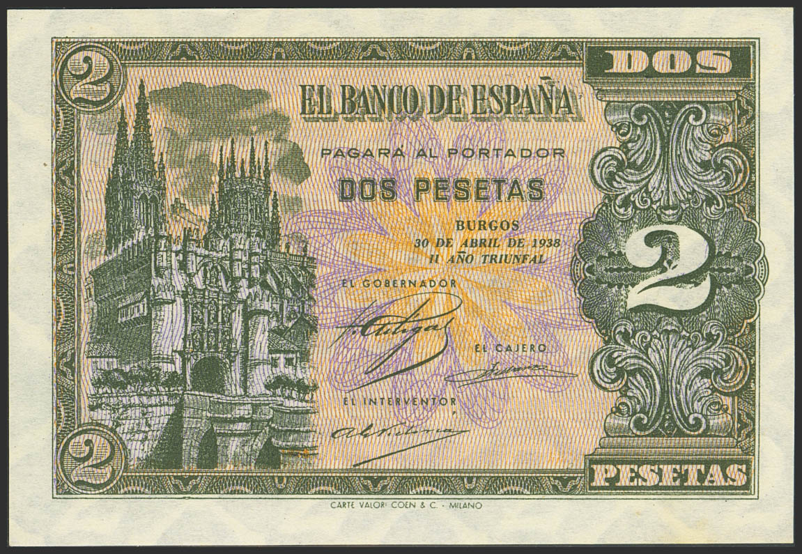2 Pesetas. 30 de Abril de 1938. Serie N, última serie emitida. (Edifil 2023: 429b). Apresto original. SC.