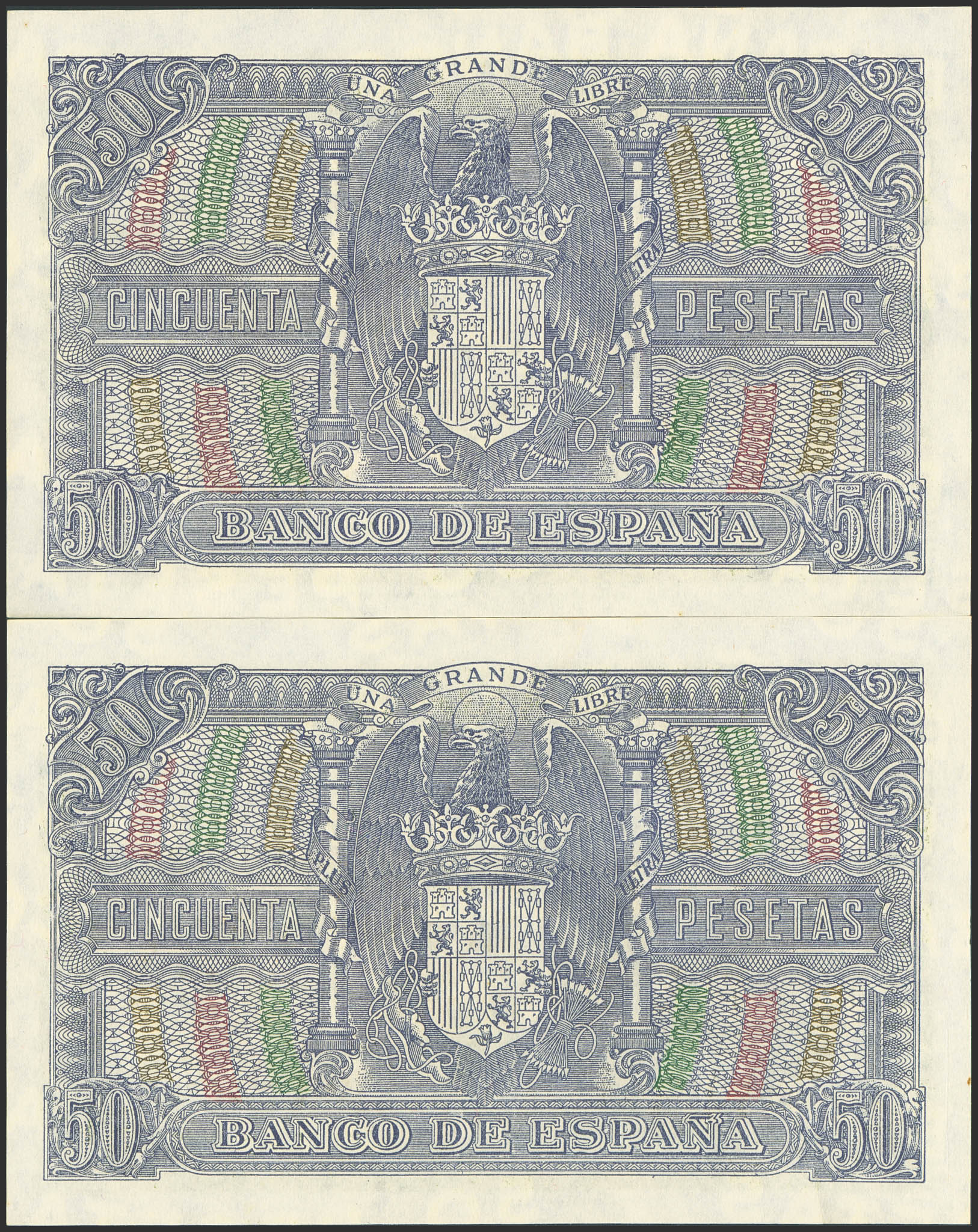 50 Pesetas. 9 de Enero de 1940. Pareja correlativa. Serie B. (Edifil 2023: 437a). Apresto original. SC-.