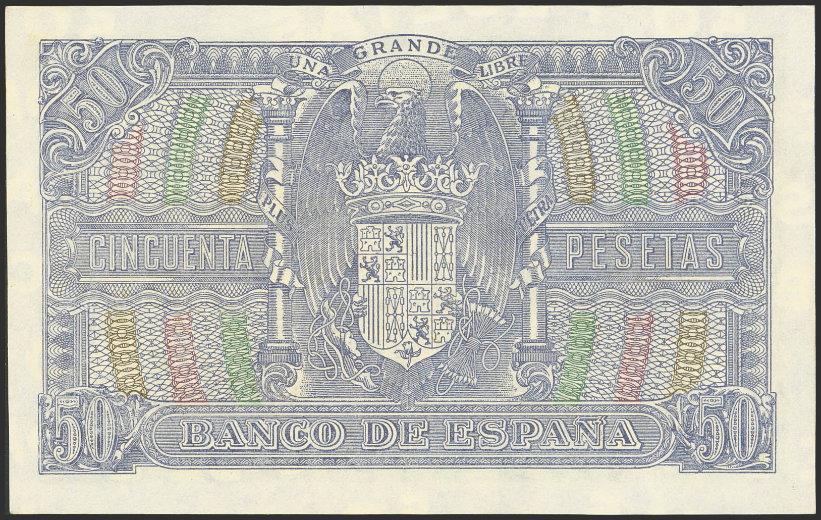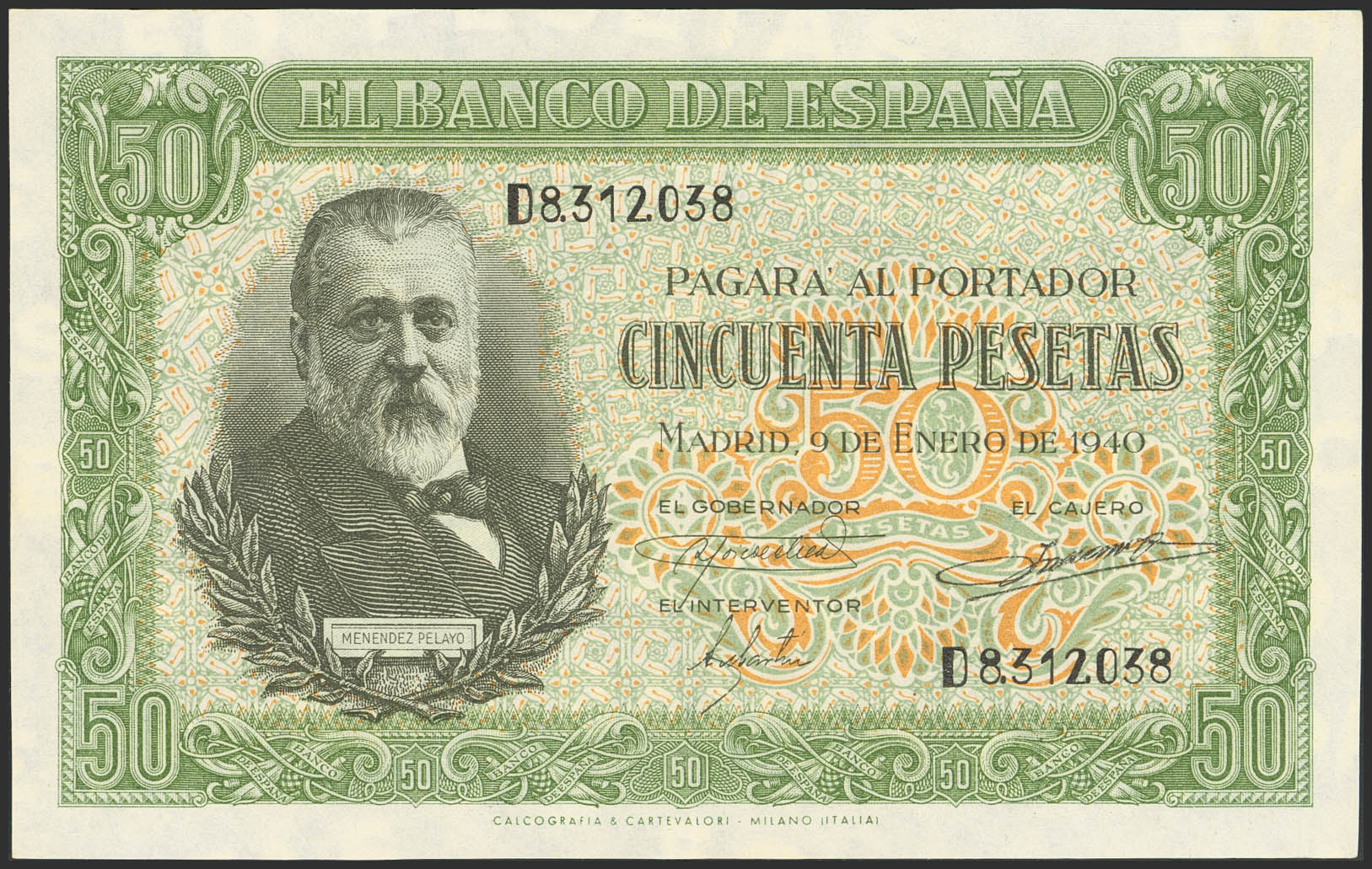 50 Pesetas. 9 de Enero de 1940. Serie D. (Edifil 2023: 437a). Conserva gran parte de su apresto original. EBC+.