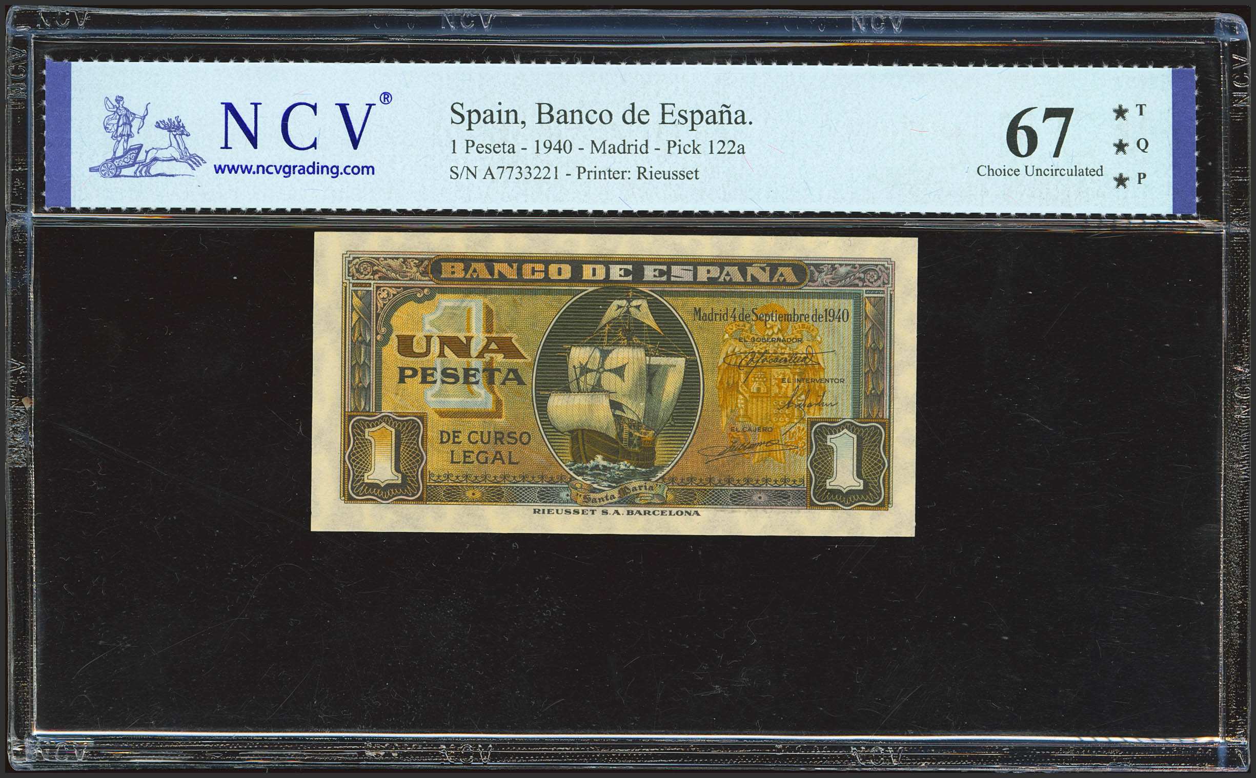 1 Peseta. 4 de Septiembre de 1940. Serie A. (Edifil 2023: 442a, Pick: 122a). Apresto original. SC. Encapsulado NCV67TPQ.