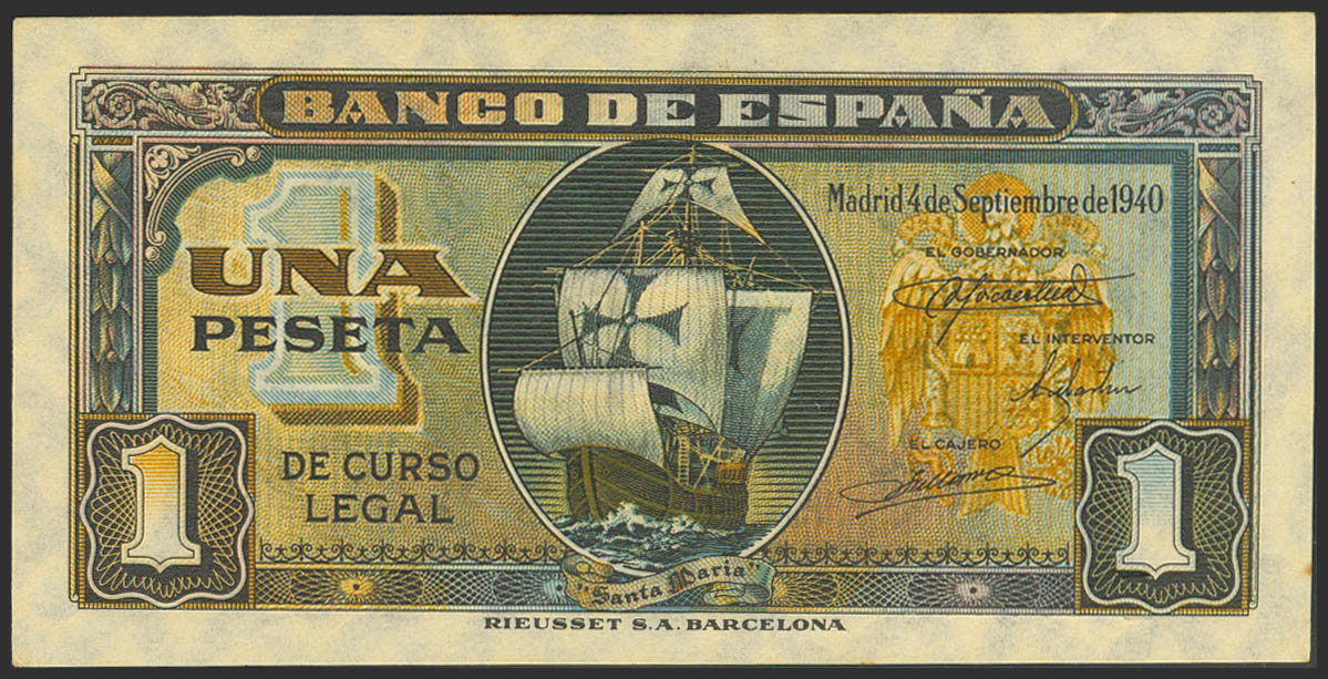 1 Peseta. 4 de Septiembre de 1940. Serie B. (Edifil 2023: 442a). Apresto original. SC.