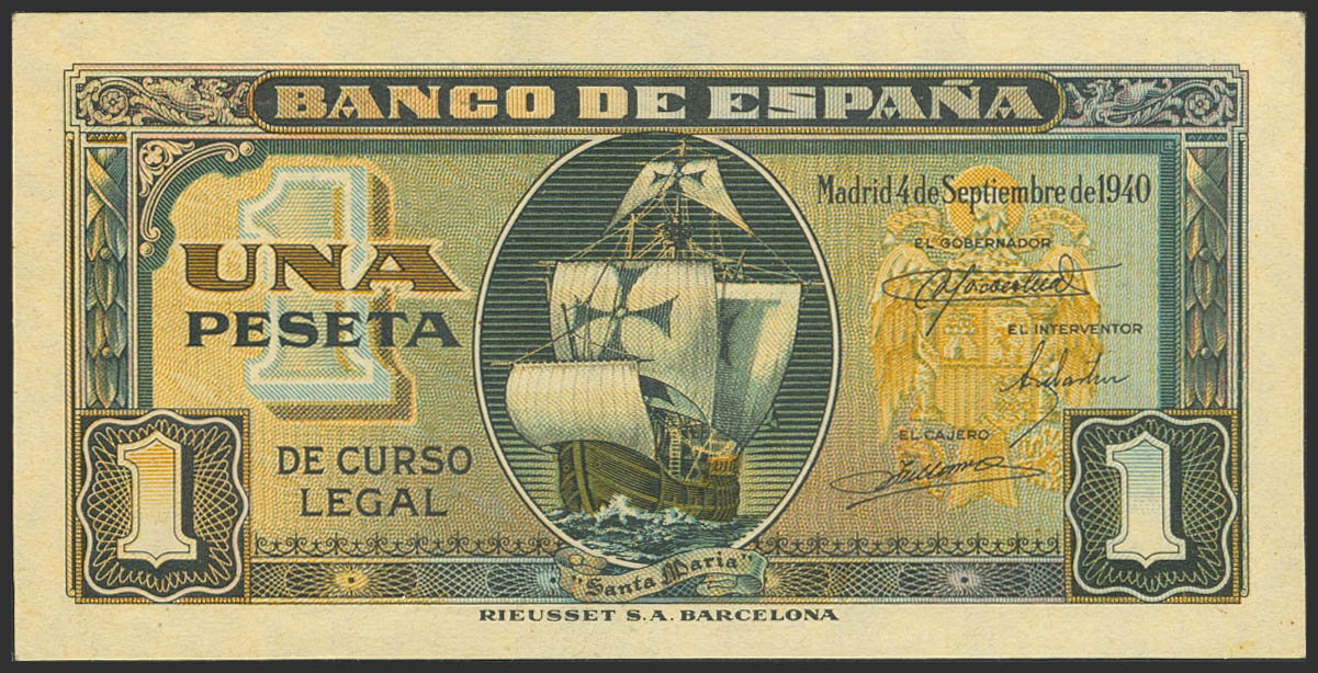 1 Peseta. 4 de Septiembre de 1940. Serie G. (Edifil 2023: 442a). Apresto original. SC-.