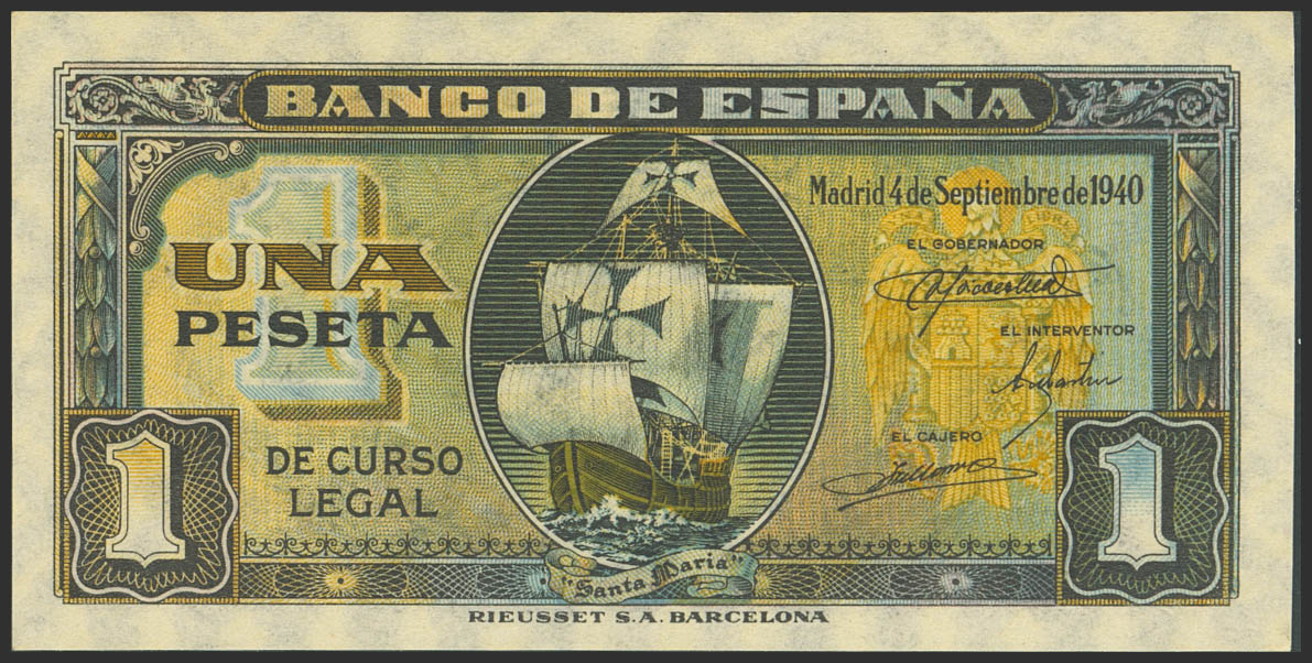 1 Peseta. 4 de Septiembre de 1940. Serie I, última serie emitida. (Edifil 2023: 442b). Apresto original. SC.
