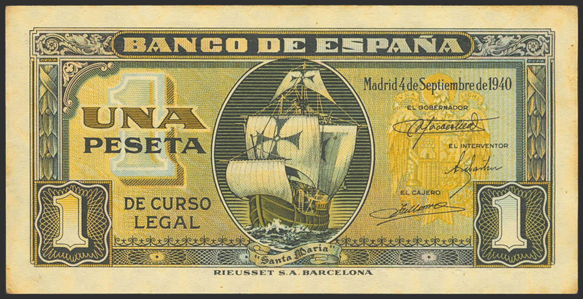 1 Peseta. 4 de Septiembre de 1940. Serie I, última serie emitida. (Edifil 2023: 442b). Apresto original, sombras del tiempo. SC--.
