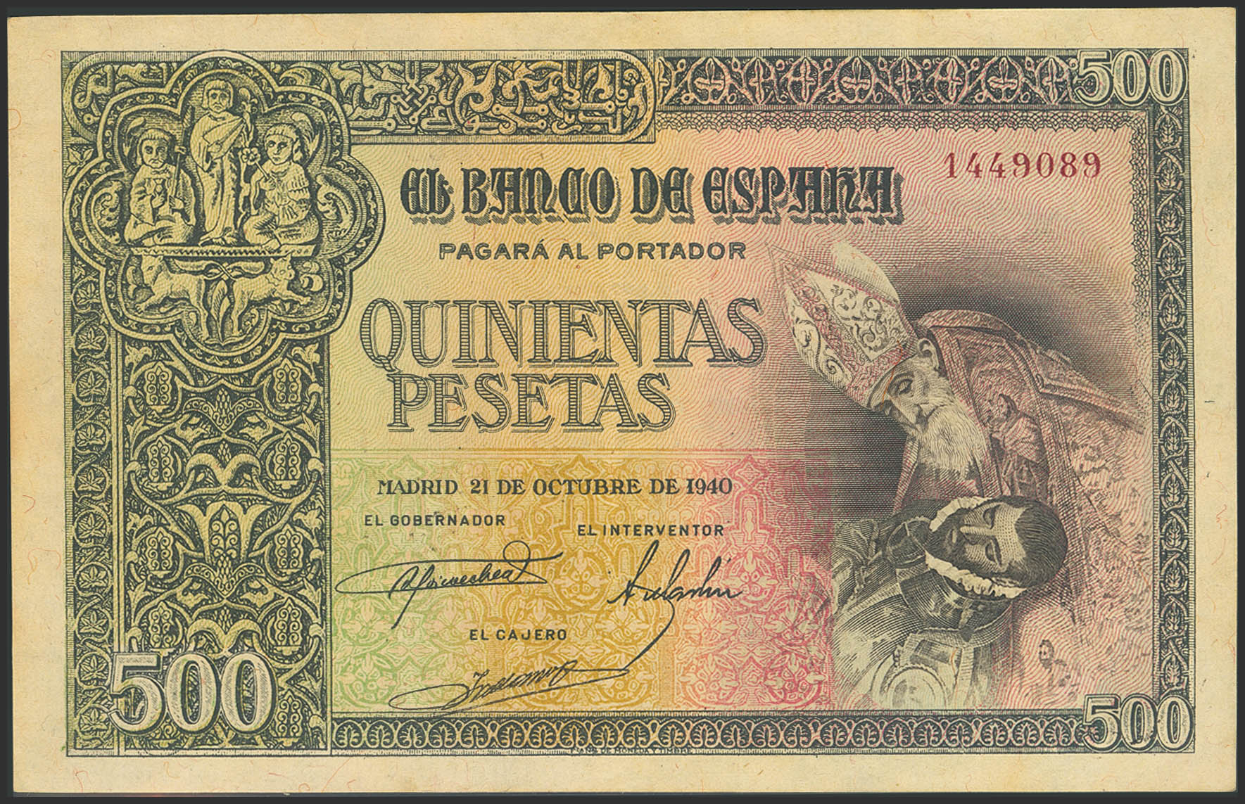 500 Pesetas. 21 de Octubre de 1940. Sin serie. (Edifil 2023: 444). EBC-.
