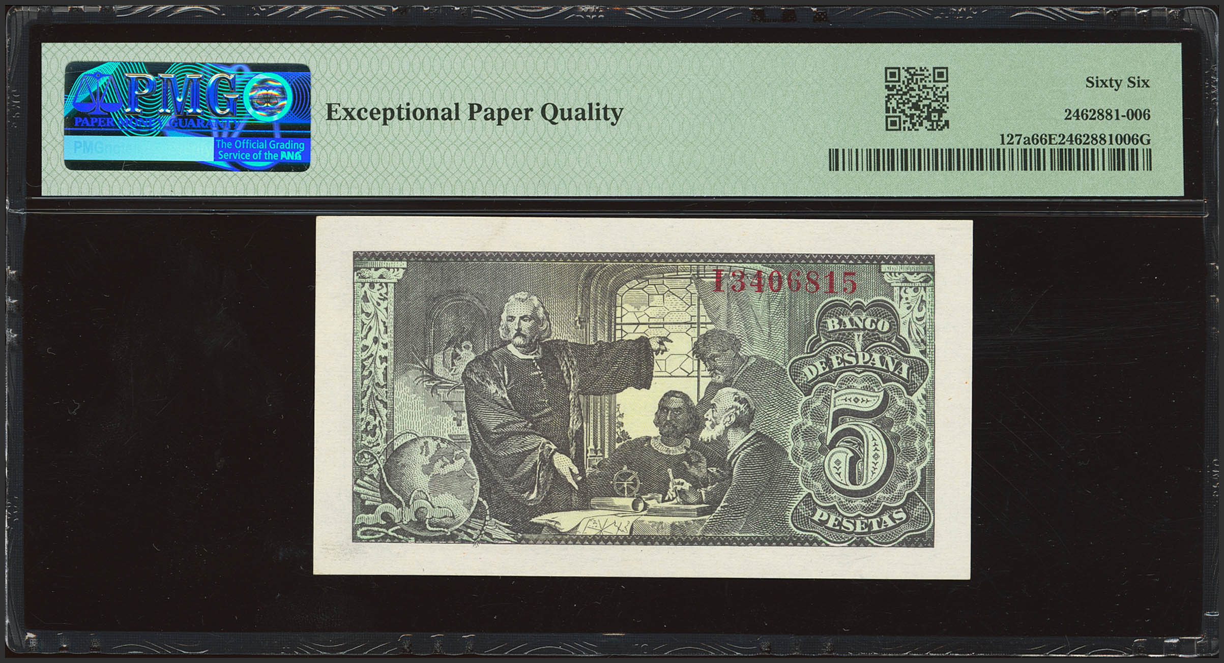 5 Pesetas. 13 de Febrero de 1943. Serie I. (Edifil 2023: 446a, Pick: 127a). Apresto original. SC. Encapsulado PMG66EPQ.