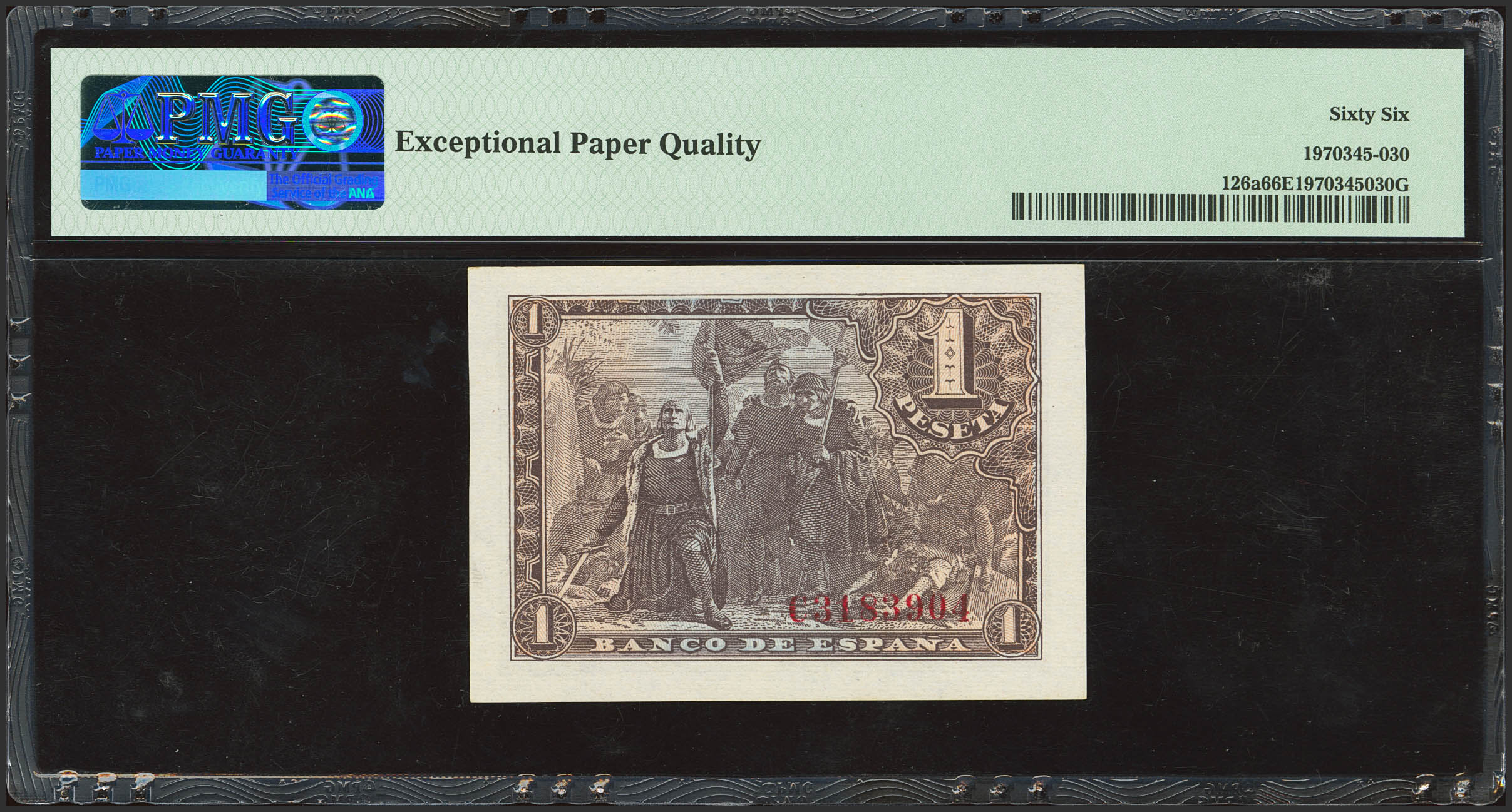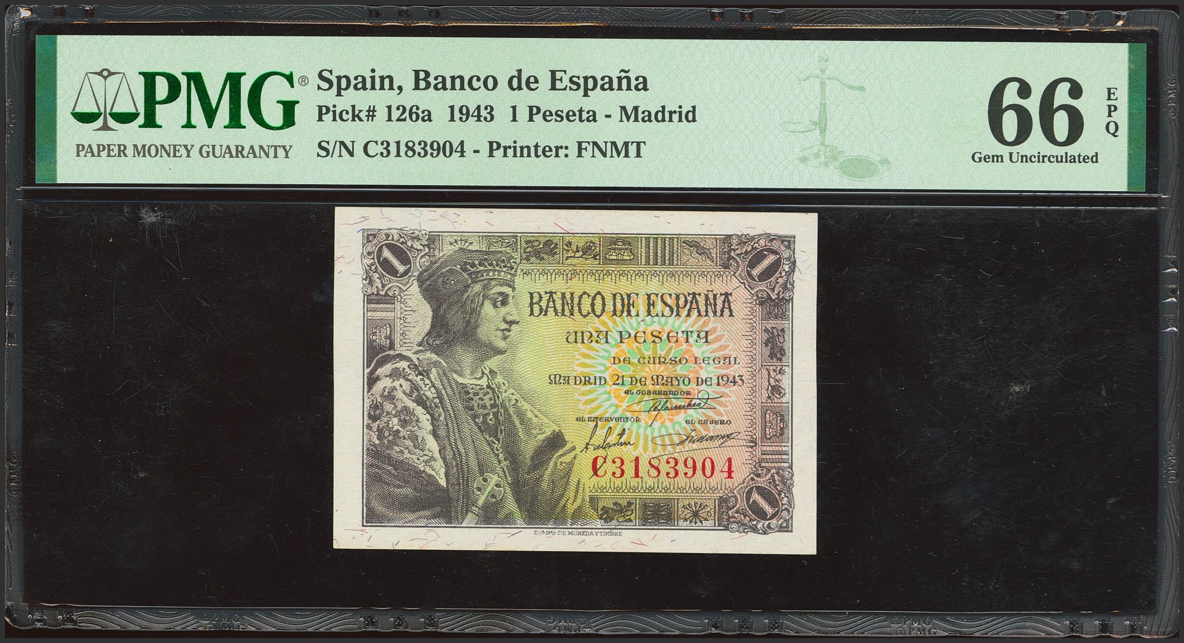 1 Peseta. 21 de Mayo de 1943. Serie C. (Edifil 2023: 447a, Pick: 126a). Apresto original. SC. Encapsulado PMG66EPQ.