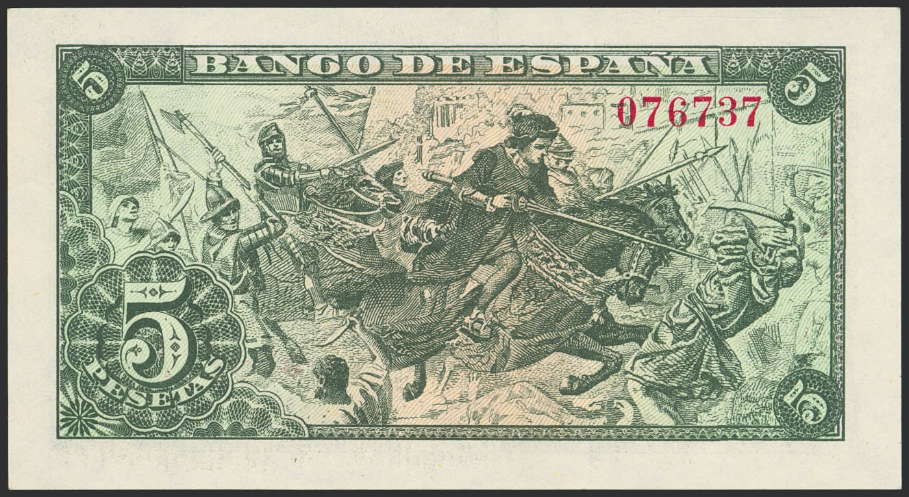5 Pesetas. 15 de Junio de 1945. Sin serie. (Edifil 2023: 449). Apresto original. EBC++.