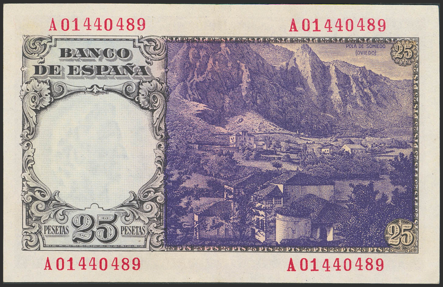 25 Pesetas. 19 de Febrero de 1946. Serie A. (Edifil 2023: 450a). Apresto original. SC-.