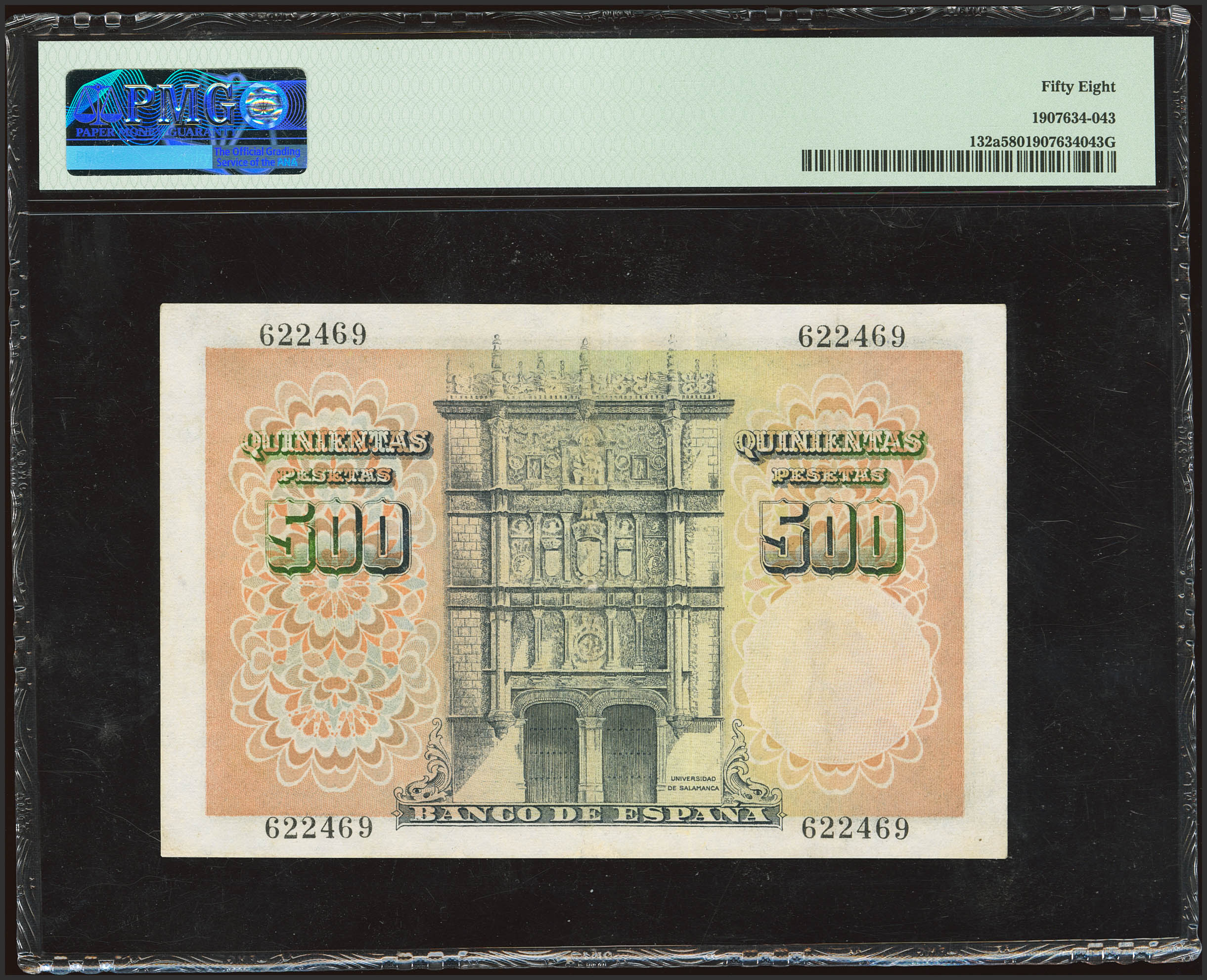 500 Pesetas. 19 de Febrero de 1948. Sin serie. (Edifil 2023: 452, Pick: 132a). Raro. EBC++. Encapsulado PMG58.