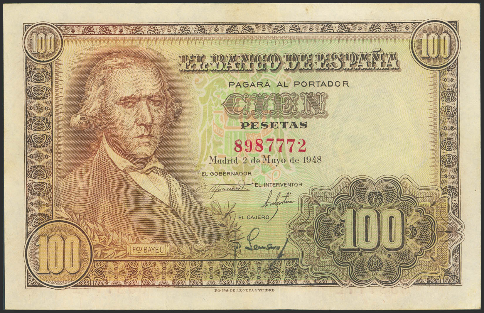 100 Pesetas. 2 de Mayo de 1948. Sin serie. (Edifil 2023: 456). Conserva parte de su apresto original. EBC.
