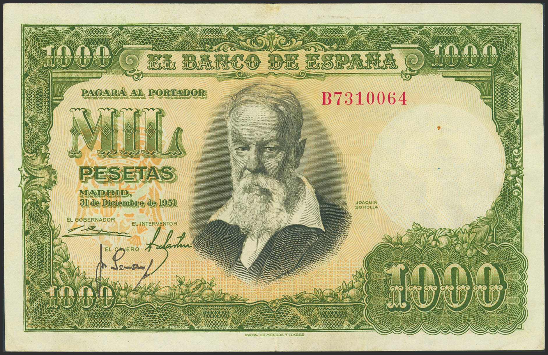 1000 Pesetas. 31 de Diciembre de 1951. Serie A. (Edifil 2021: 463a). Conserva parte del apresto original. EBC-.