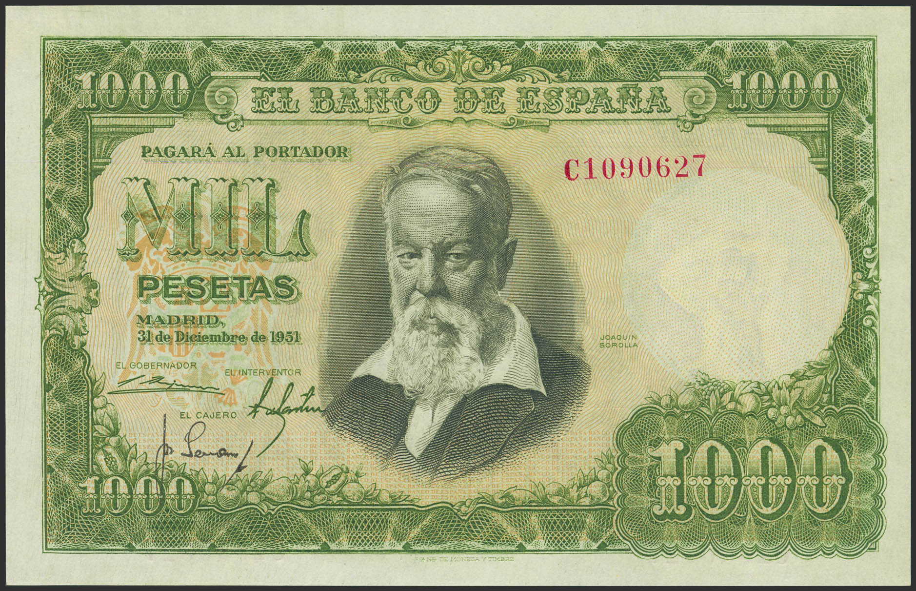 1000 Pesetas. 31 de Diciembre de 1951. Serie C. (Edifil 2023: 463b). Apresto original. SC.