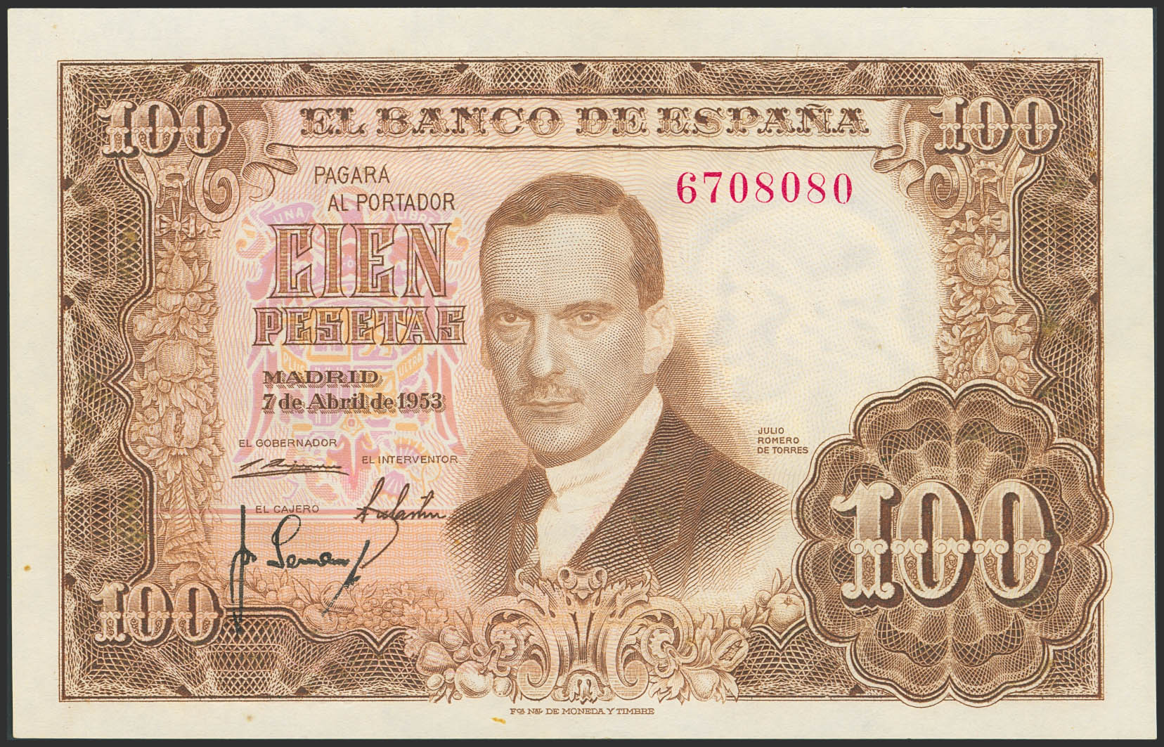 100 Pesetas. 7 de Abril de 1953. Sin serie. (Edifil 2023: 464). Apresto original. SC-.