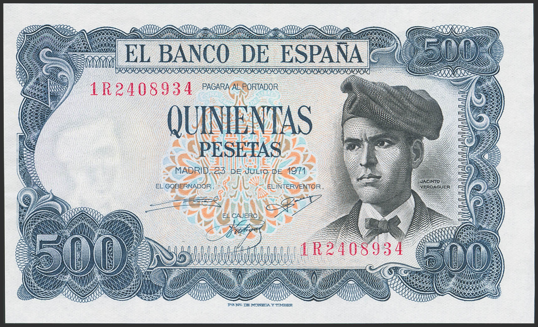 500 Pesetas. 23 de Julio de 1971. Serie 1R, última serie emitida. (Edifil 2023: 473aa). Conserva parte de su apresto original. EBC.