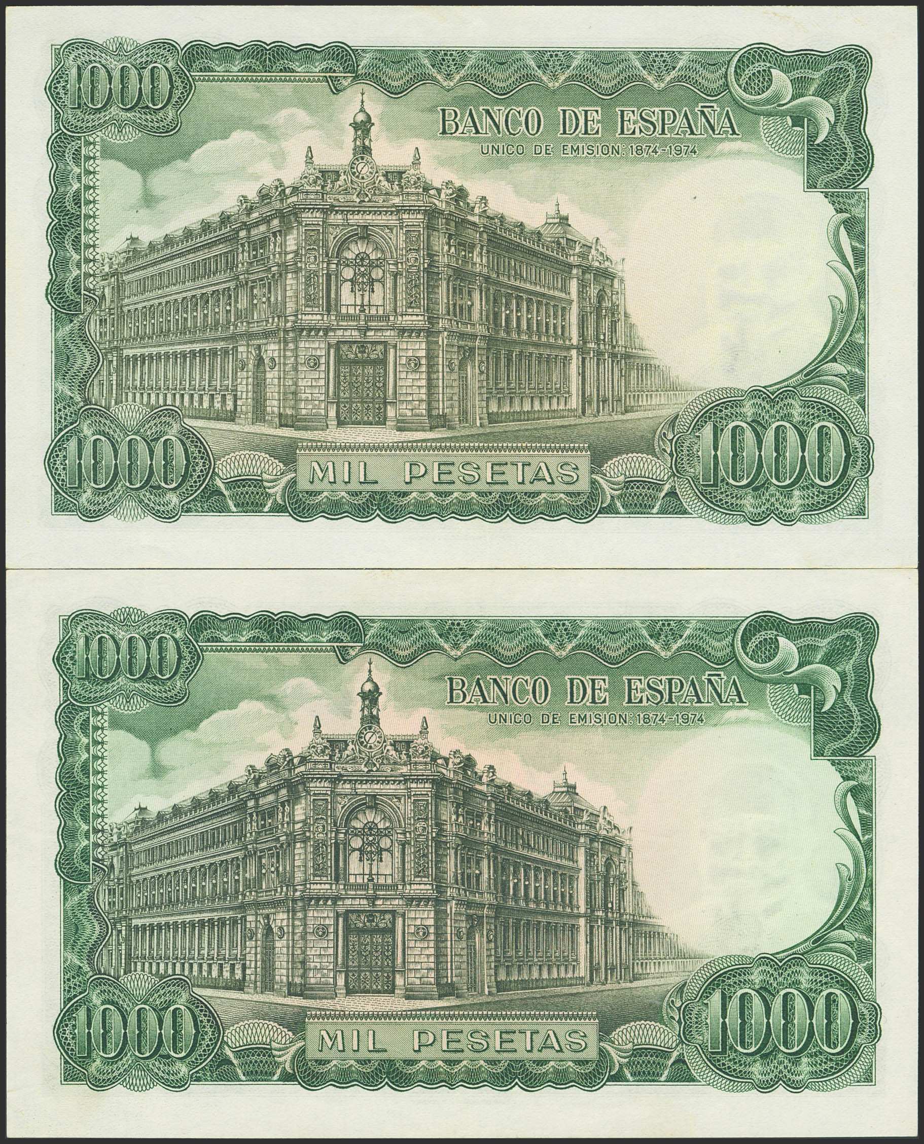 Conjunto de 2 billetes de 1000 Pesetas emitidos el 17 de Septiembre de 1971, con las series especiales 9A y 9B. (Edifil 2023: 474d). EBC+.
