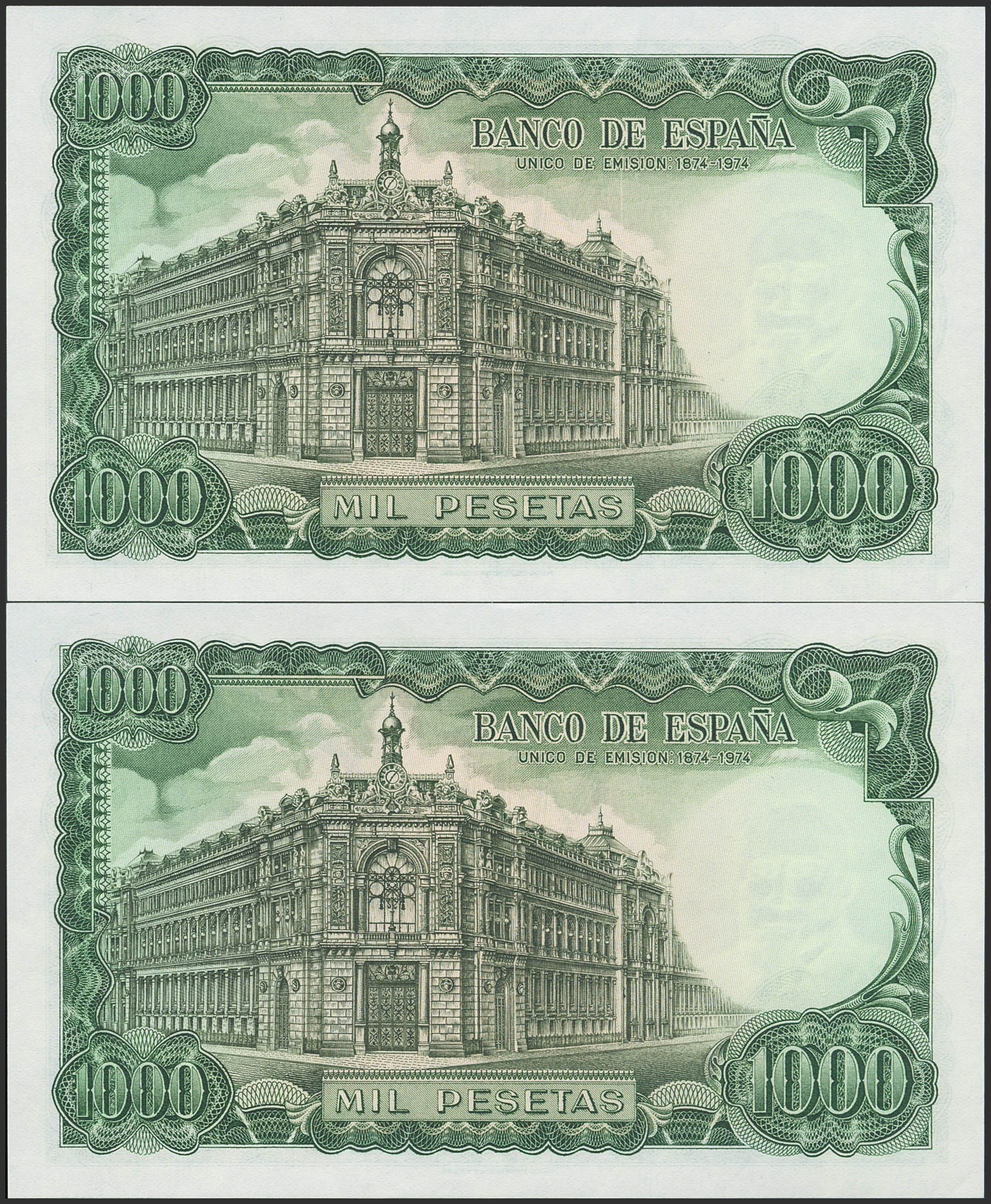 1000 Pesetas. 17 de Septiembre de 1971. Pareja correlativa. Serie 5M. (Edifil 2023: 474c). Apresto original. SC.