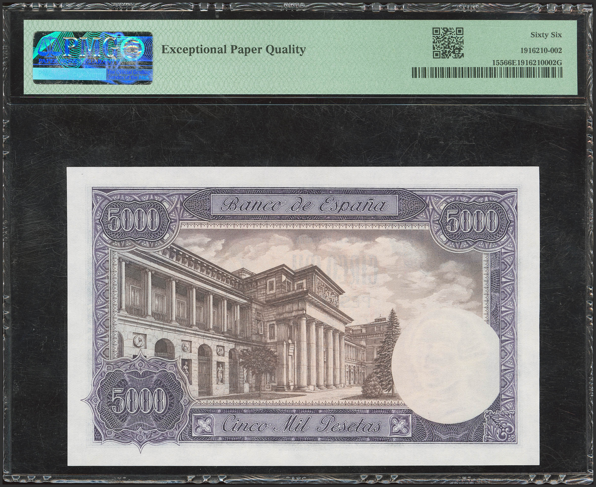 5000 Pesetas. 6 de Febrero de 1976. Sin serie. (Edifil 2023: 475, Pick: 155). Apresto original. SC. Encapsulado PMG66EPQ.