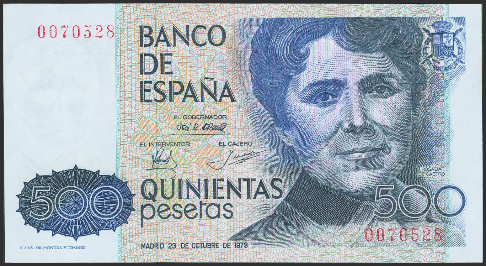 500 Pesetas. 23 de Octubre de 1979. Sin serie y numeración baja. (Edifil 2023: 476). SC.