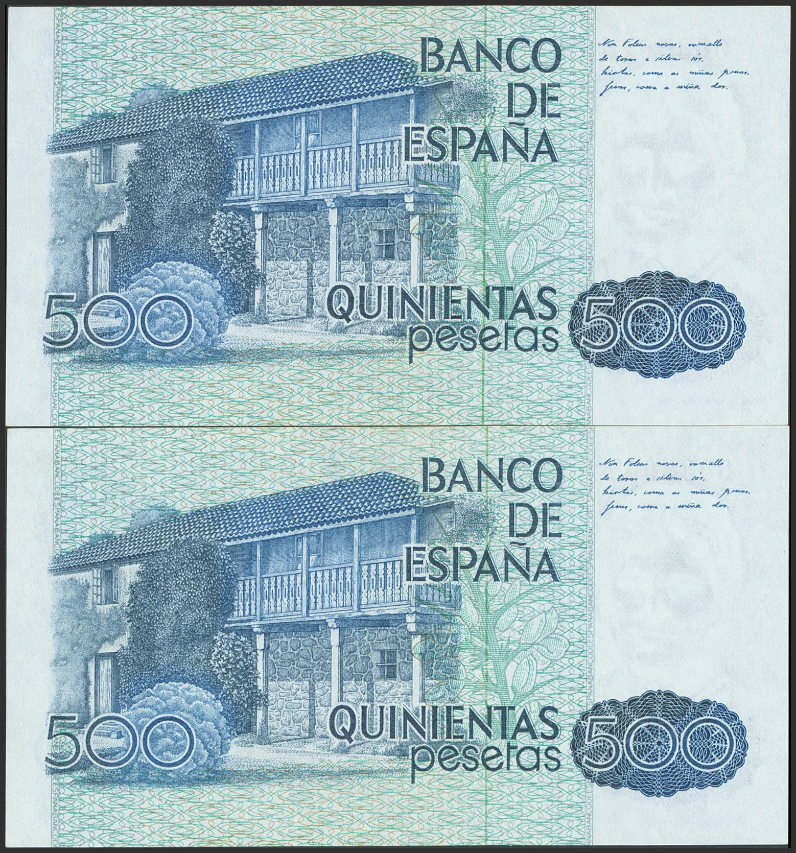 500 Pesetas. 23 de Octubre de 1979. Pareja correlativa. Sin serie y numeración muy baja. (Edifil 2023: 476). Apresto original. SC.