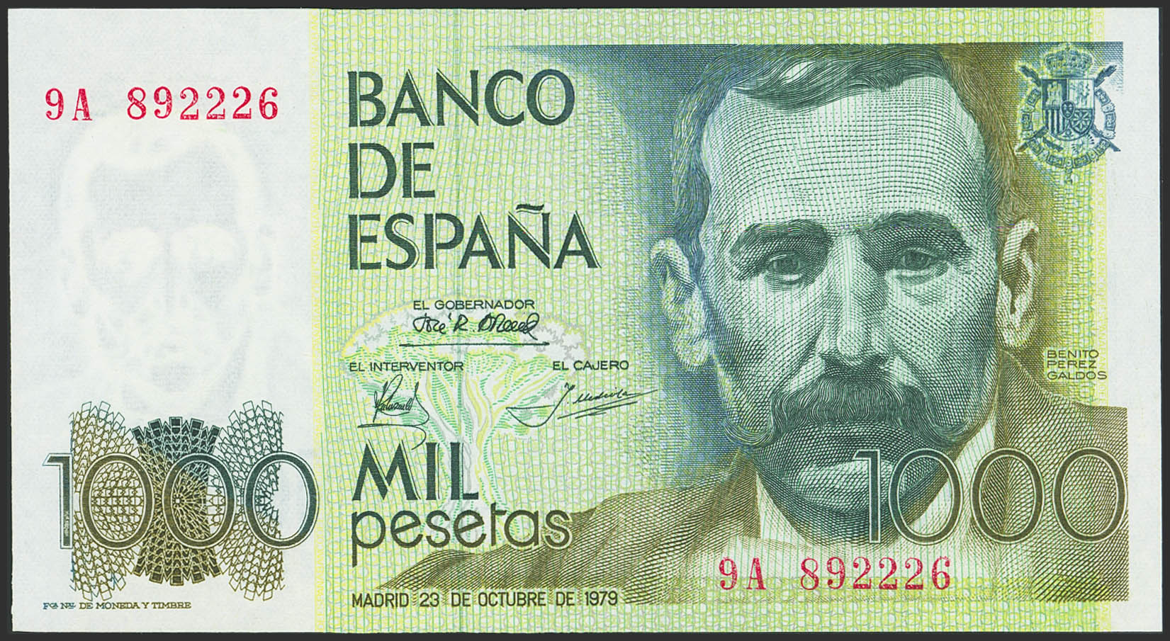 1000 Pesetas. 23 de Octubre de 1979. Serie especial 9A. (Edifil 2023: 477b). Raro. SC.
