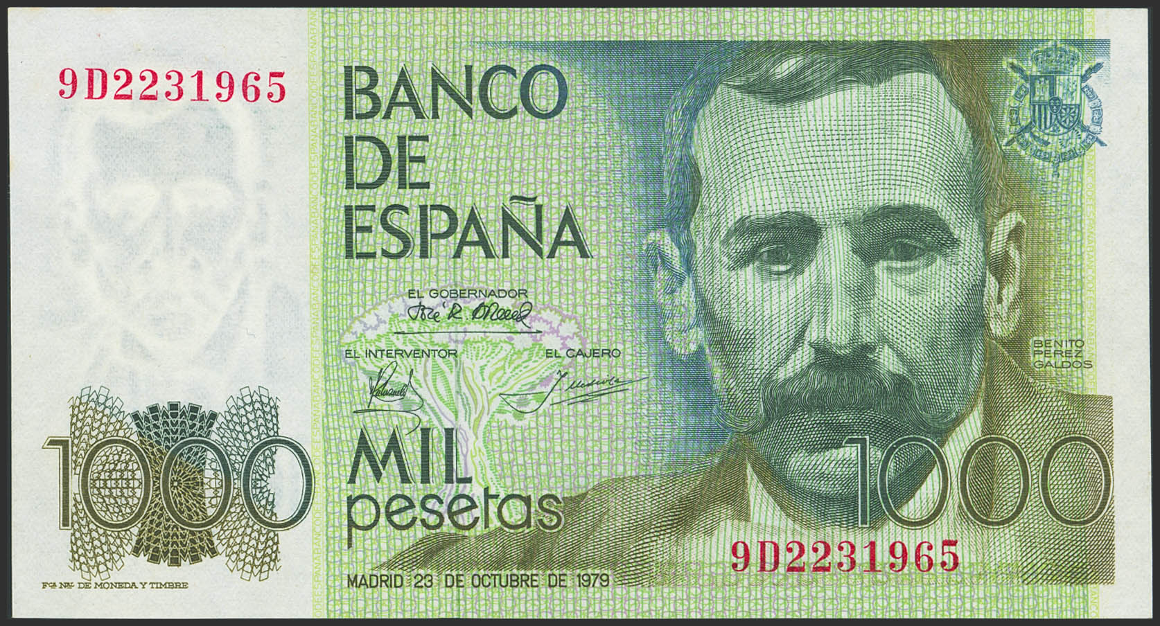 1000 Pesetas. 23 de Octubre de 1979. Serie especial 9D. (Edifil 2023: 477b). Raro. SC.