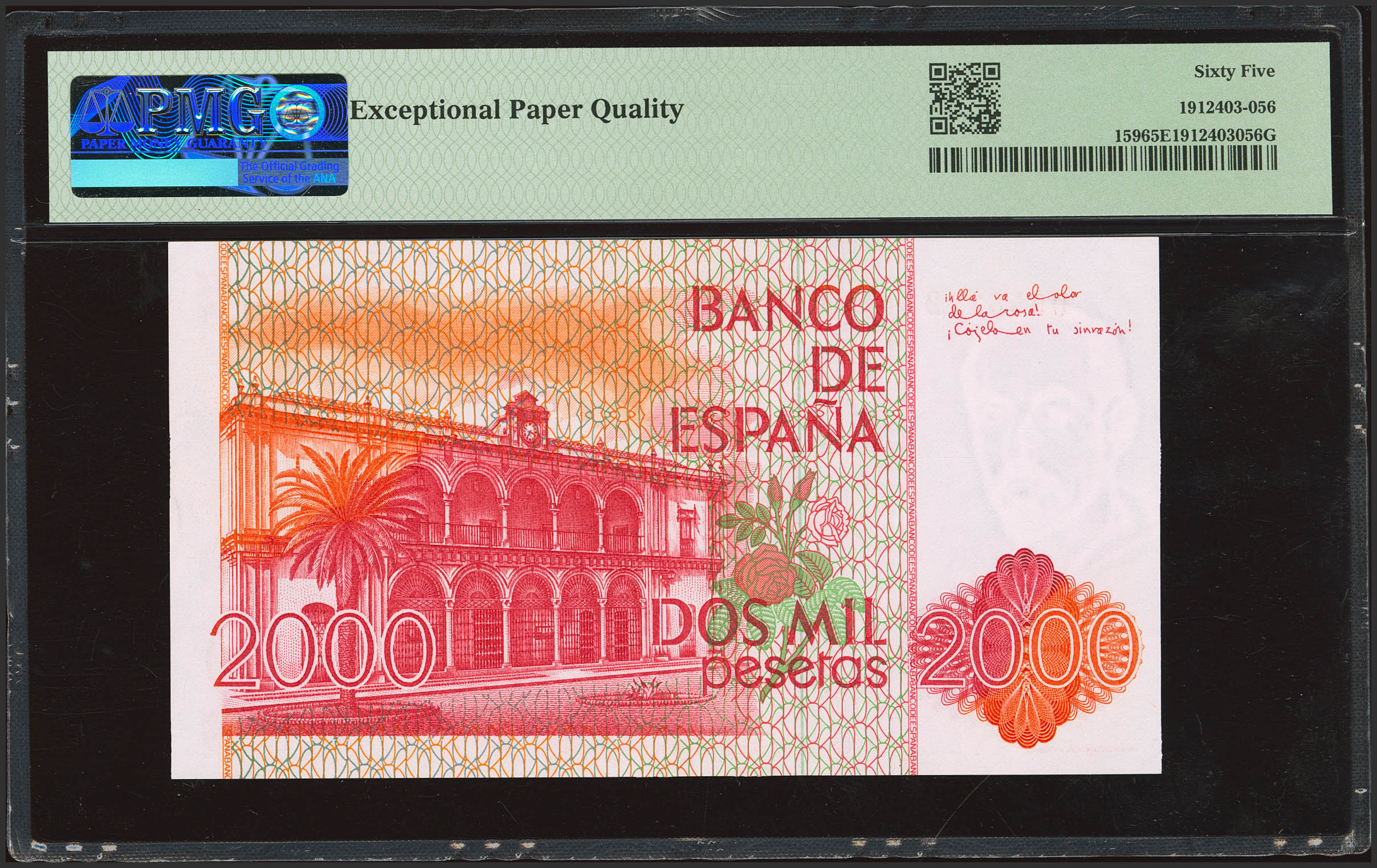2000 Pesetas. 22 de Julio de 1980. Sin serie y numeración baja. (Edifil 2023: 479, Pick: 159). SC. Encapsulado PMG65EPQ.