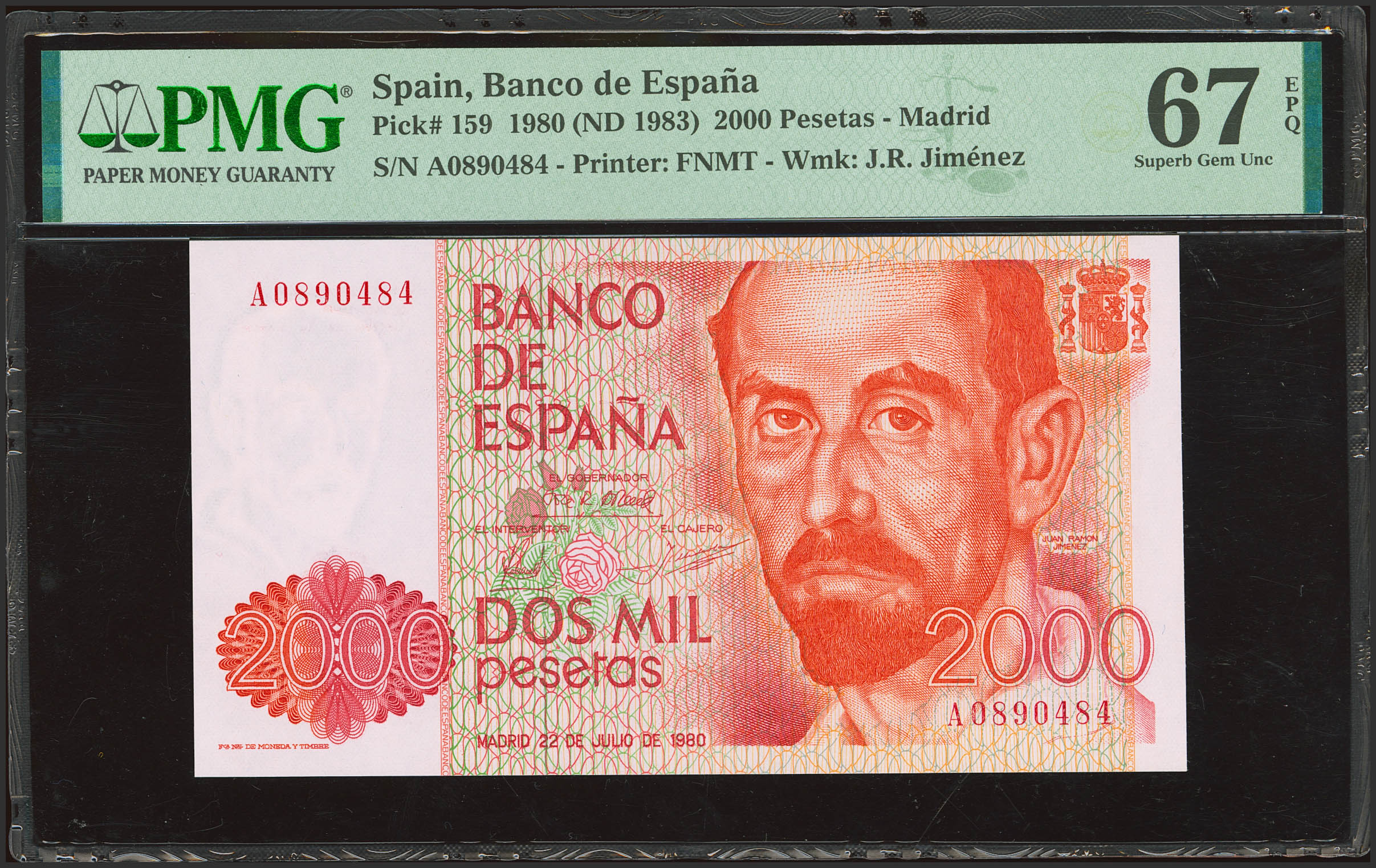 2000 Pesetas. 22 de Julio de 1980. Serie A. (Edifil 2023: 479a, Pick: 159). SC. Encapsulado PMG67EPQ.