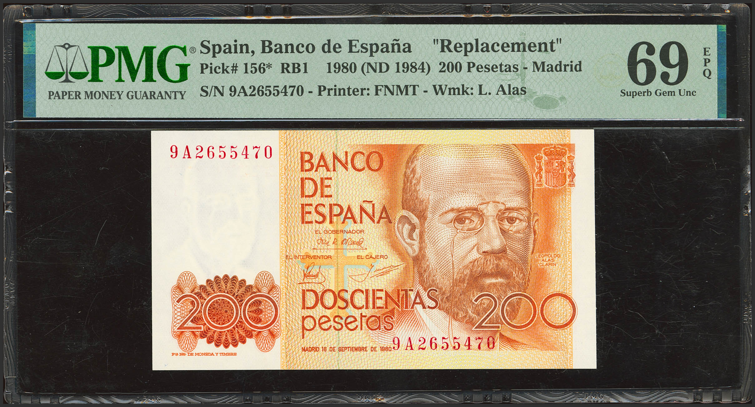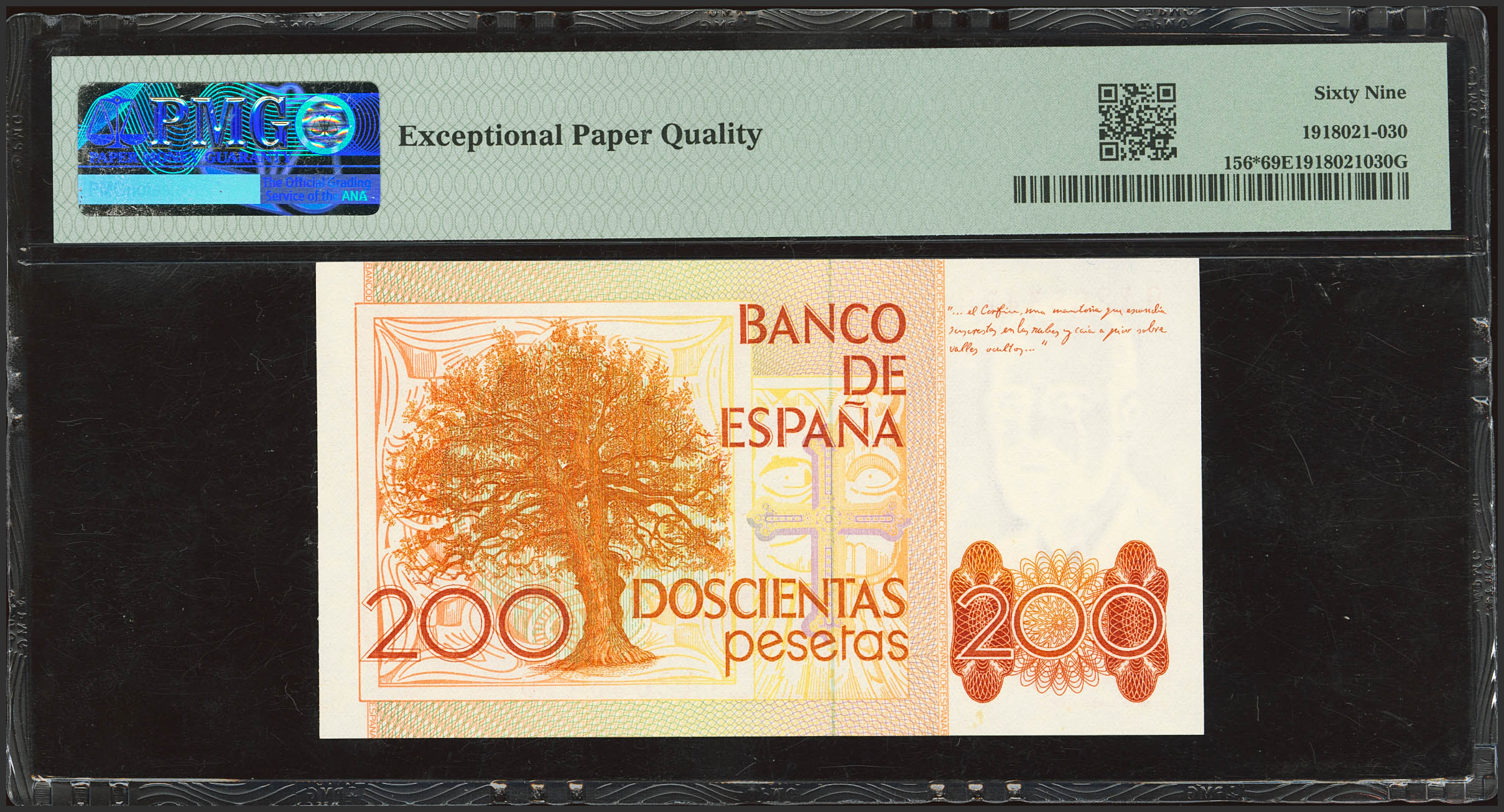 200 Pesetas. 16 de Septiembre de 1980. Serie especial 9A. (Edifil 2023: 480b, Pick: 156*). Raro en esta calidad. SC. Encapsulado PMG69EPQ.