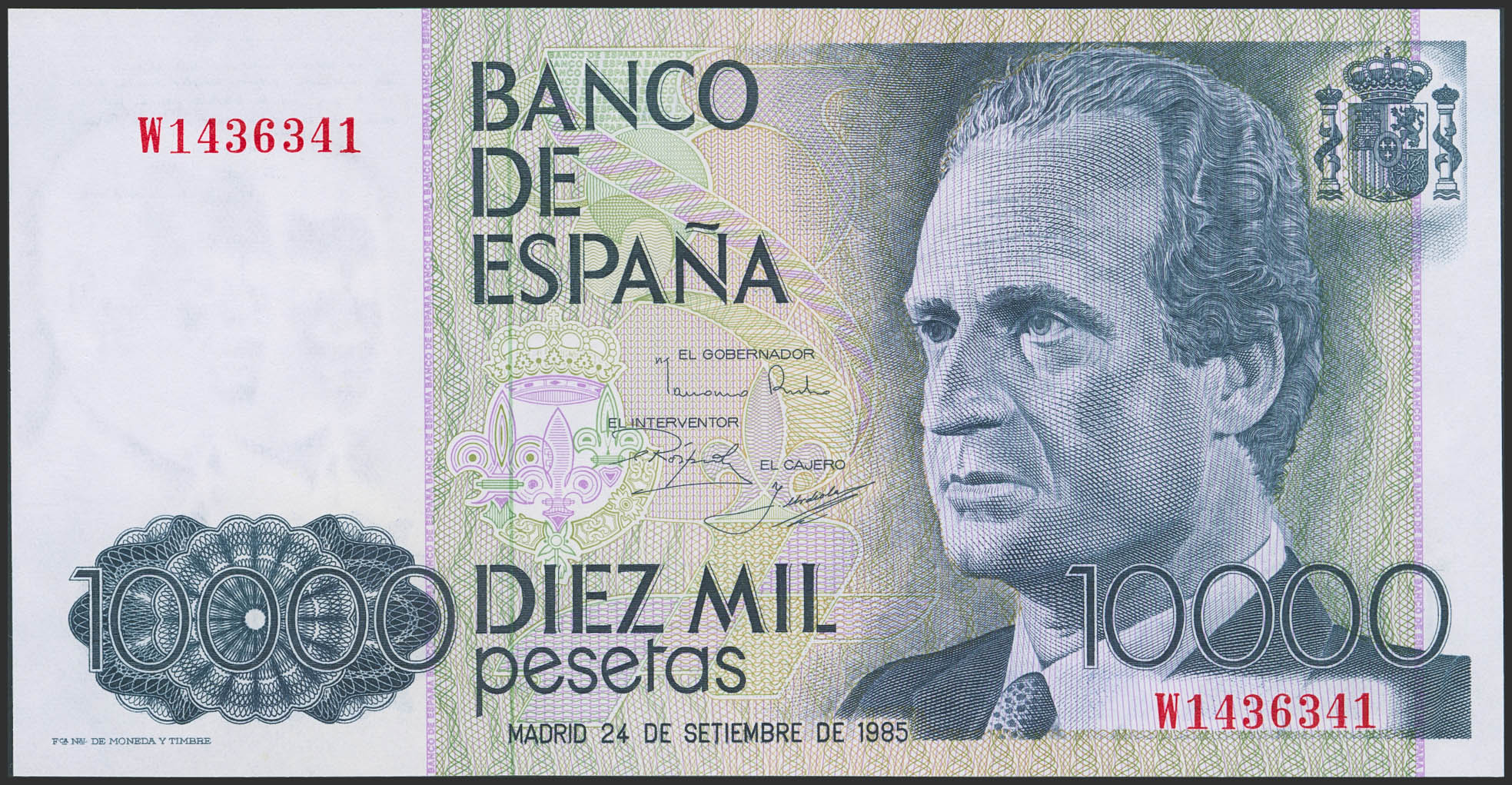 10000 Pesetas. 24 de Septiembre de 1985. Serie W. (Edifil 2023: 481a). EBC+++.