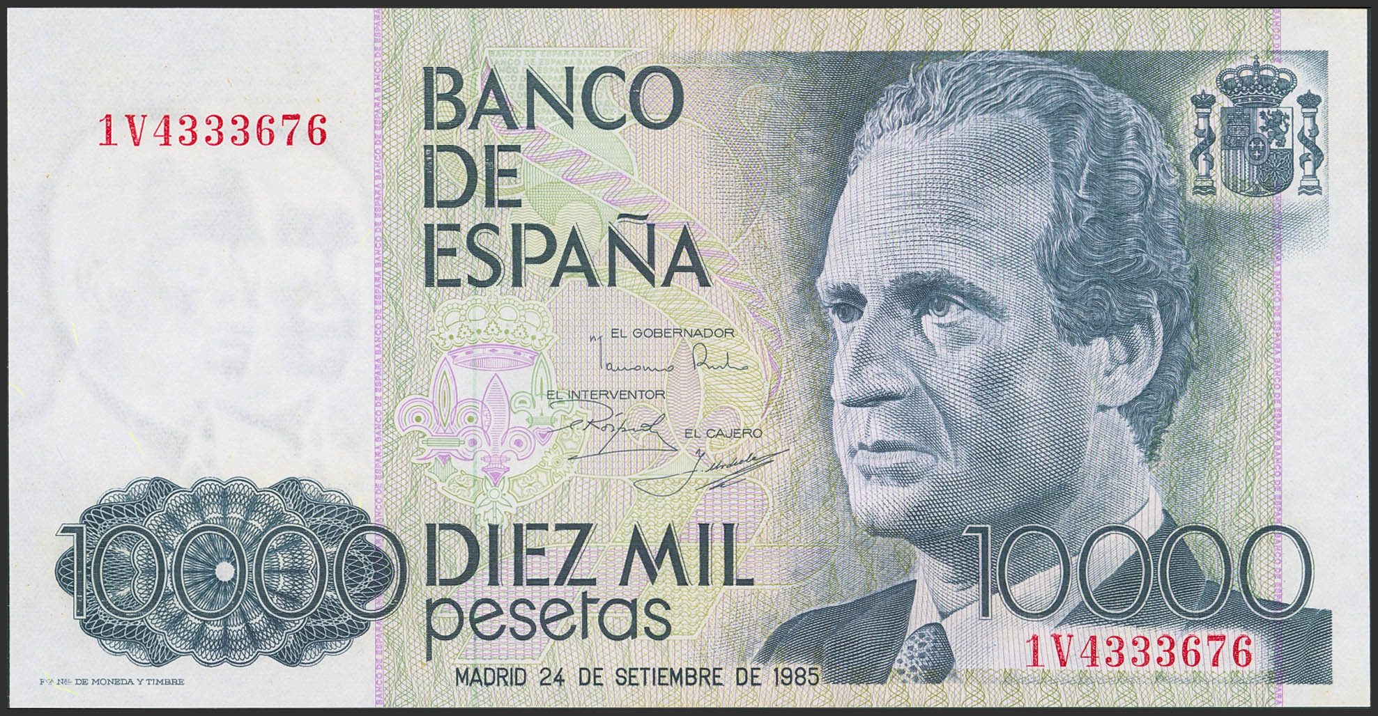 10000 Pesetas. 24 de Septiembre de 1985. Serie 1V. (Edifil 2023: 481a). SC.