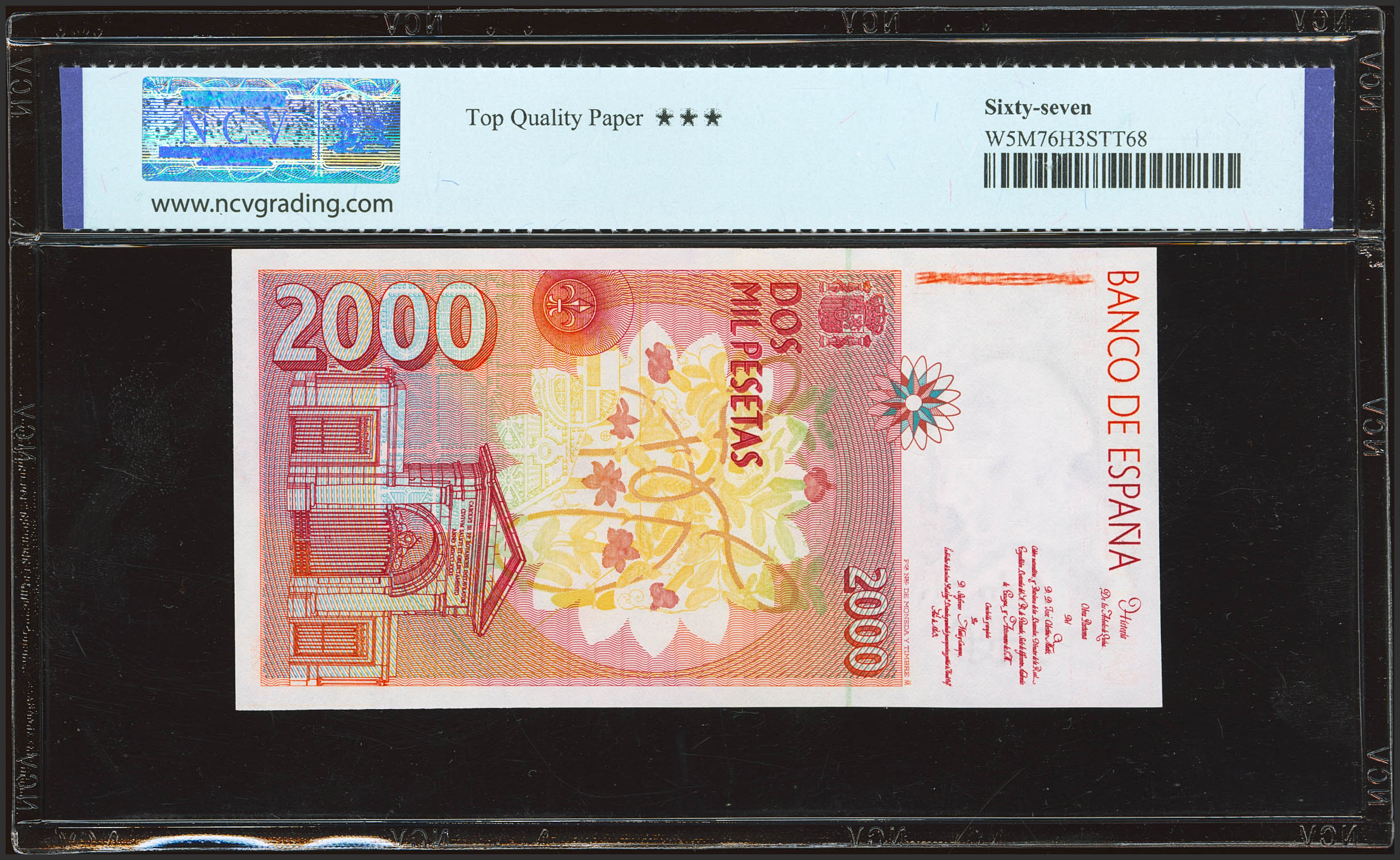2000 Pesetas. 24 de Abril de 1992. Sin serie. (Edifil 2023: 482, Pick: 162). SC. Encapsulado NCV67TPQ.