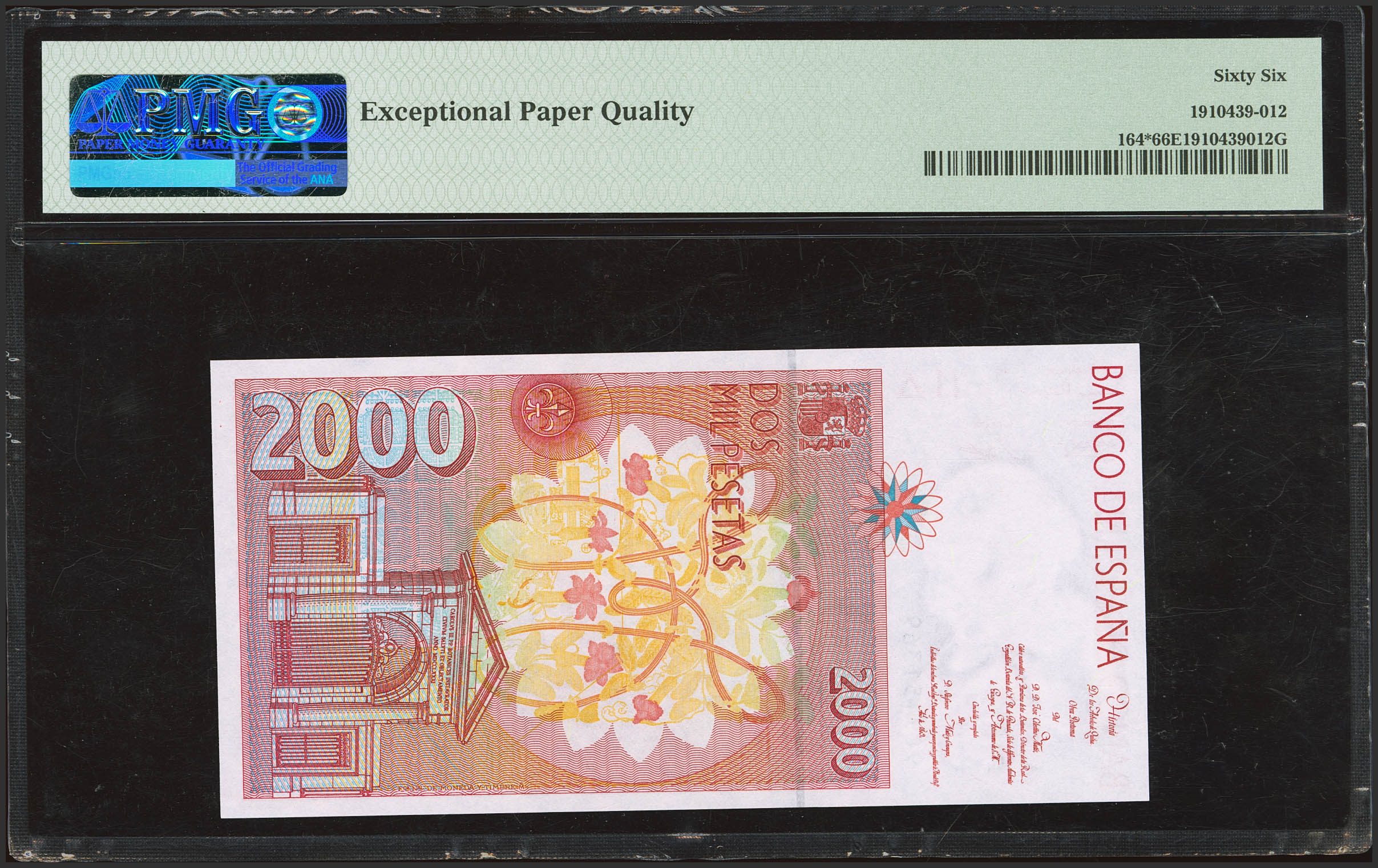2000 Pesetas. 24 de Abril de 1992. Serie especial 9C. (Edifil 2023: 482Ad, Pick: 164*). SC. Encapsulado PMG66EPQ.