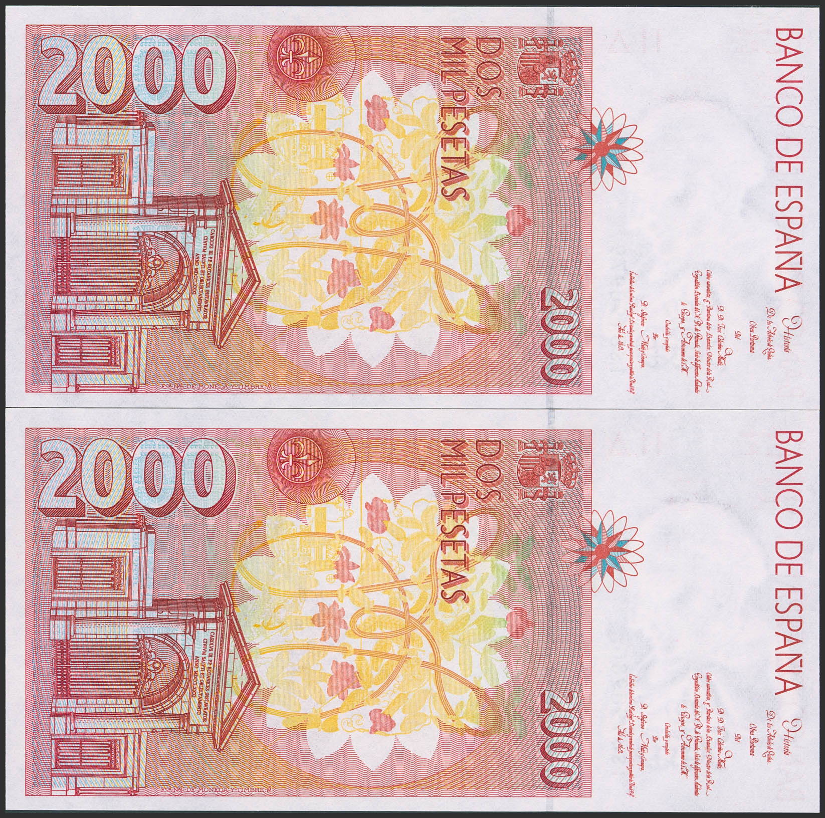 2000 Pesetas. 24 de Abril de 1992 (diseño modificado en 1995). Pareja correlativa. Serie 1S. (Edifil 2023: 482A). SC.