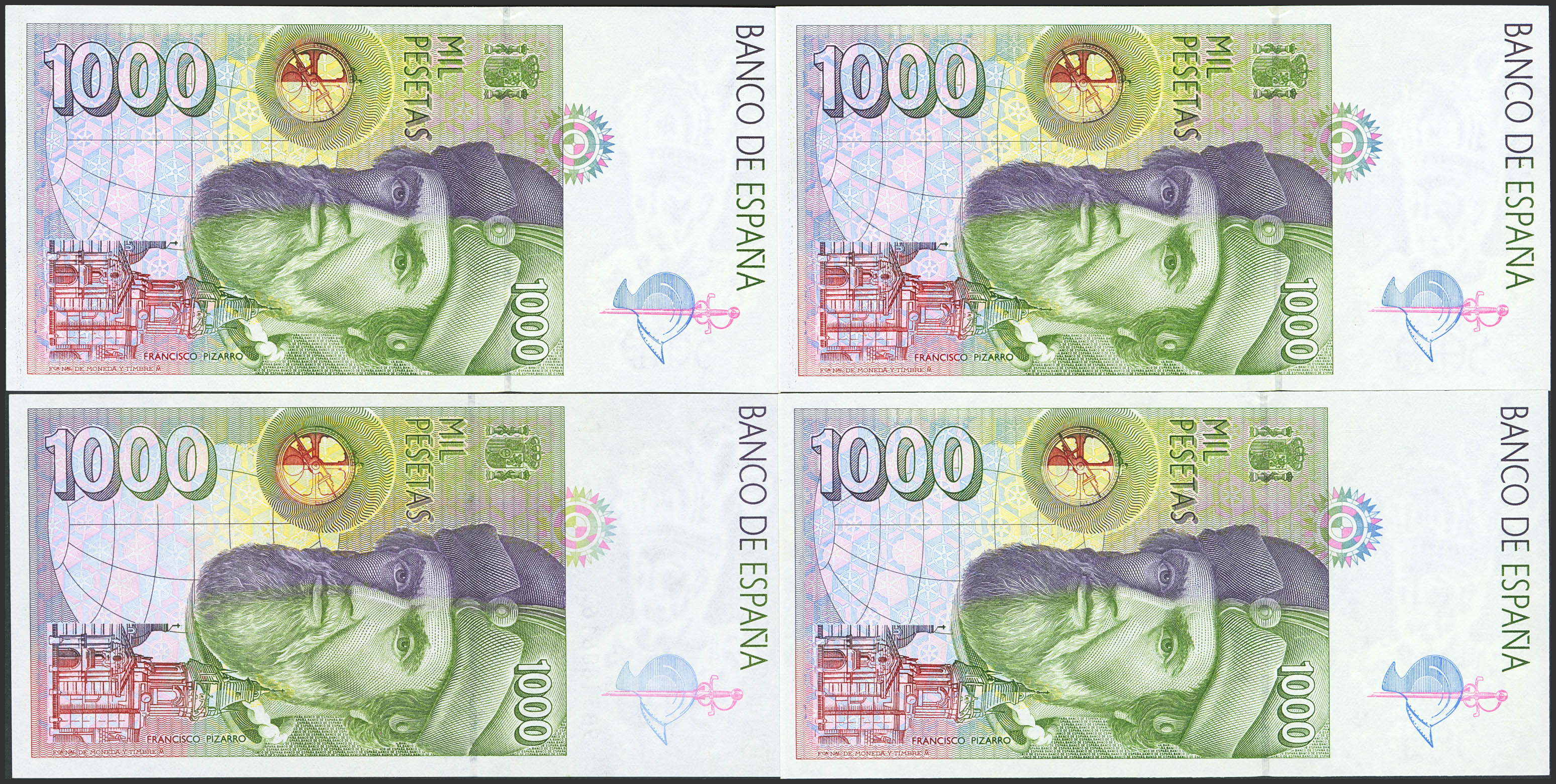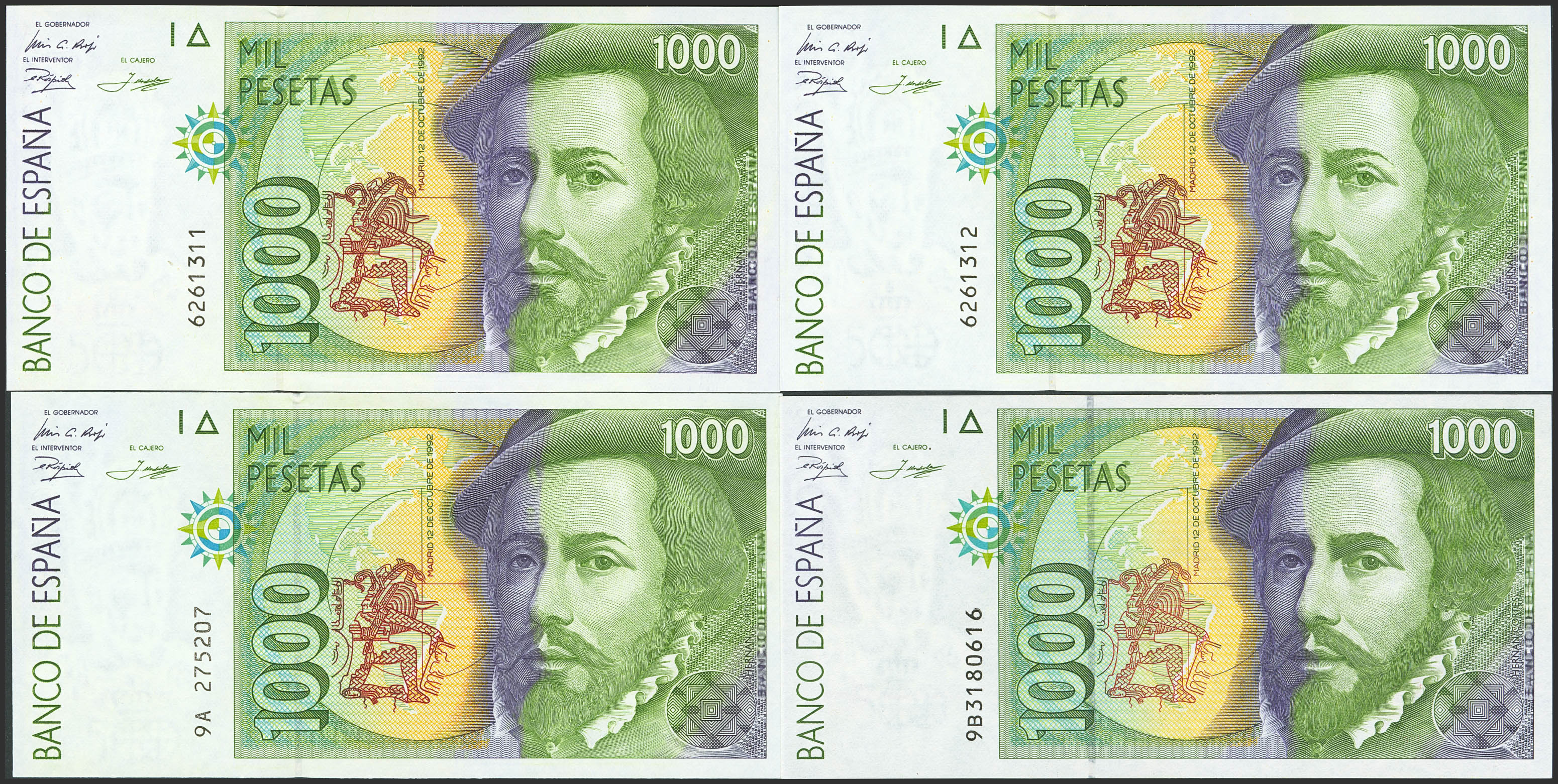 1000 Pesetas. 12 de Octubre de 1992. Sin serie (pareja correlativa) y series especiales 9A y 9B. (Edifil 2023: 483, 483c). SC.