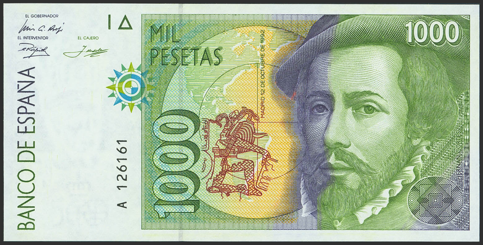 1000 Pesetas. 12 de Octubre de 1992. Serie A. (Edifil 2023: 483a). SC.